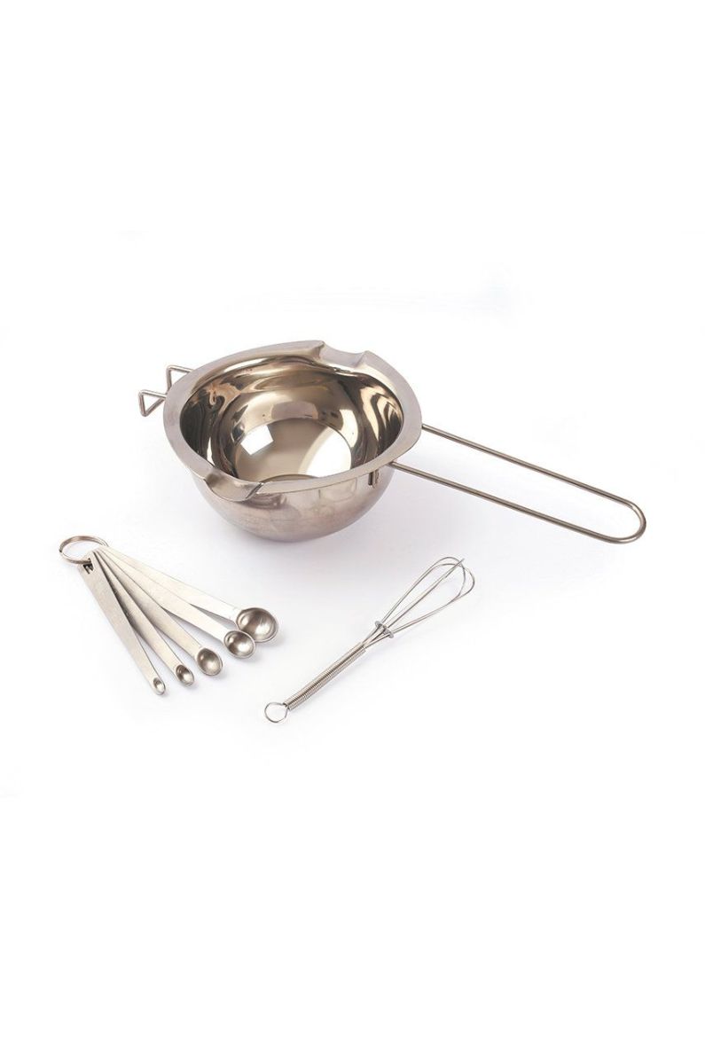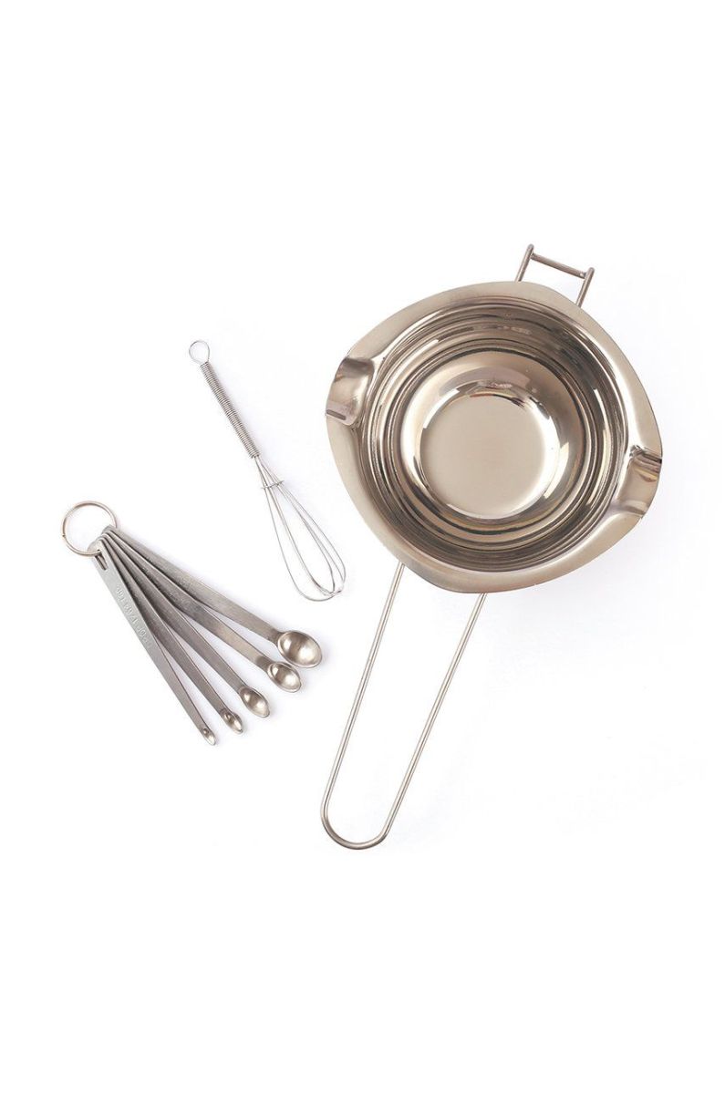 - Набір приладів для створення власної косметики: віночок, мірні лижечки та миска.