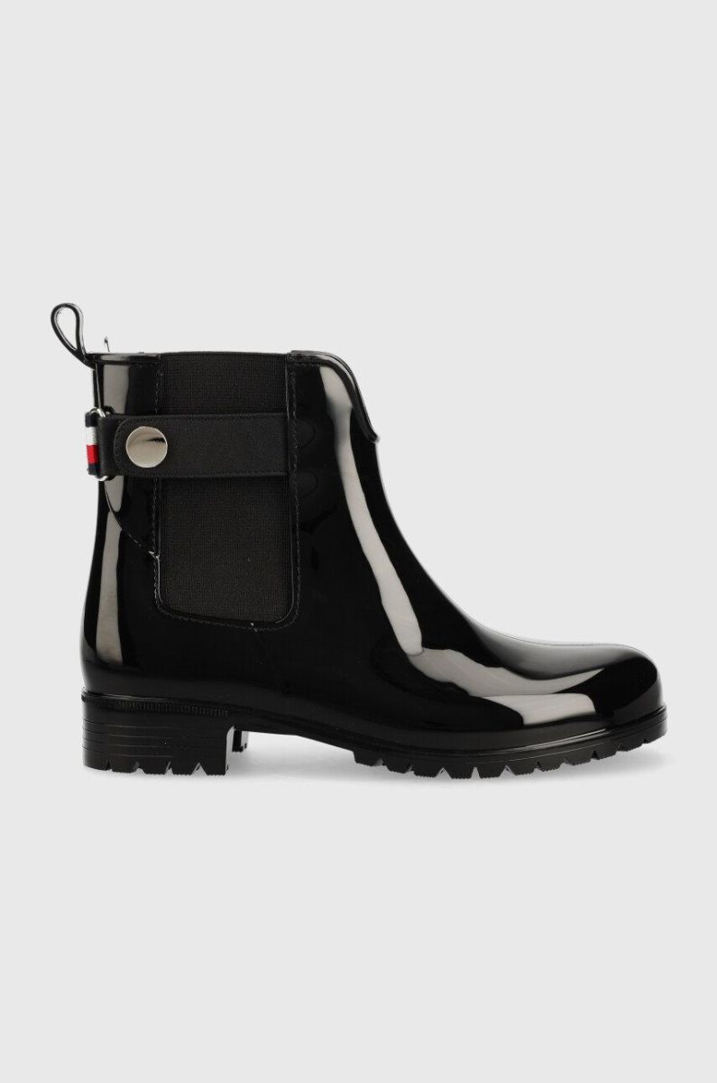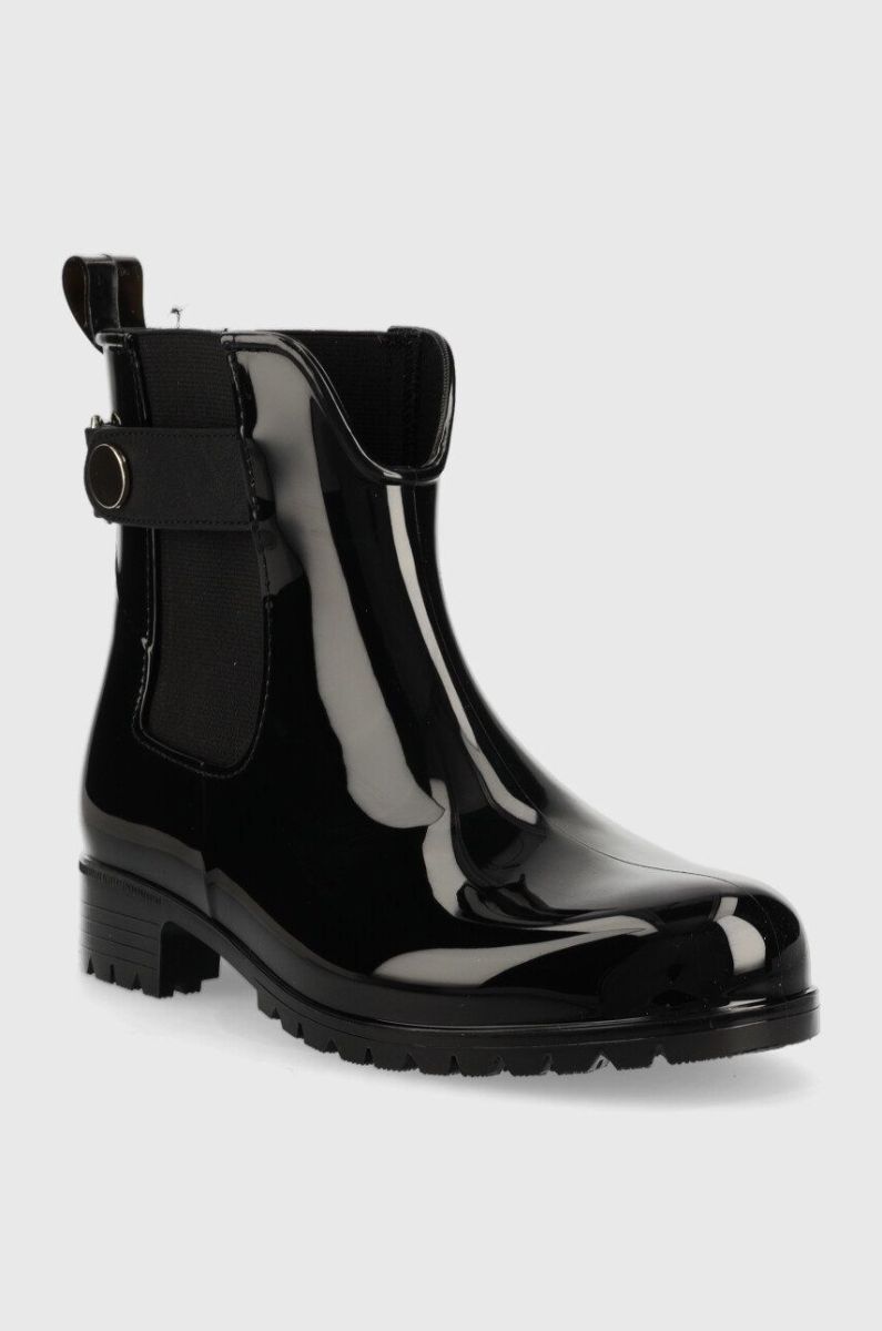 Гумові чоботи Tommy Hilfiger Ankle Rainboot With Metal Detail жіночі колір чорний