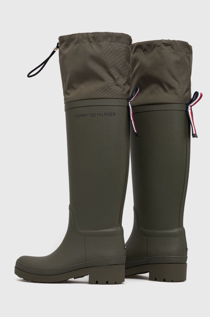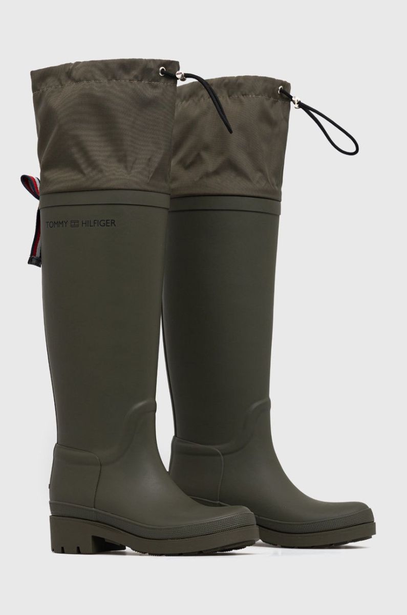 Гумові чоботи Tommy Hilfiger Th Overknee Rainboot жіночі колір зелений