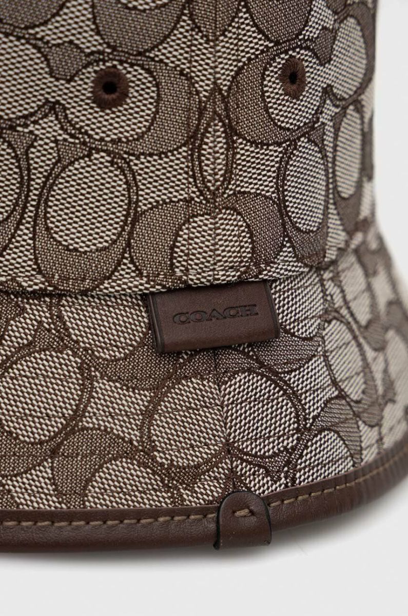 Капелюх із колекції Coach. Модель з вузьким краєм, виготовлена із узорного матеріалу.