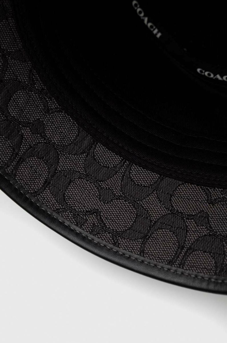 Капелюх із колекції Coach. Модель з вузьким краєм, виготовлена із узорного матеріалу.