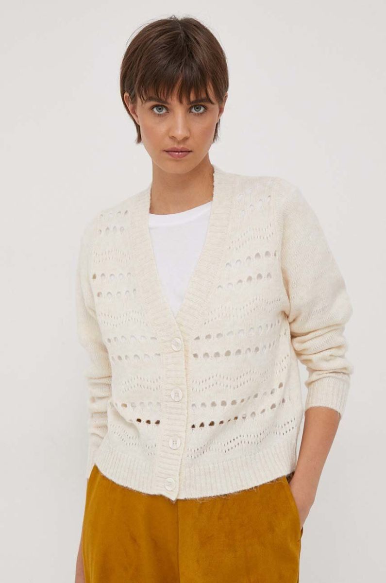 Кардиган з домішкою вовни Pepe Jeans колір бежевий легкий