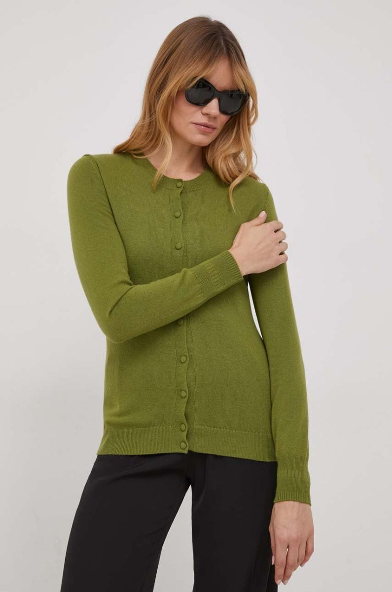 Кардиган з домішкою вовни Sisley колір зелений легкий