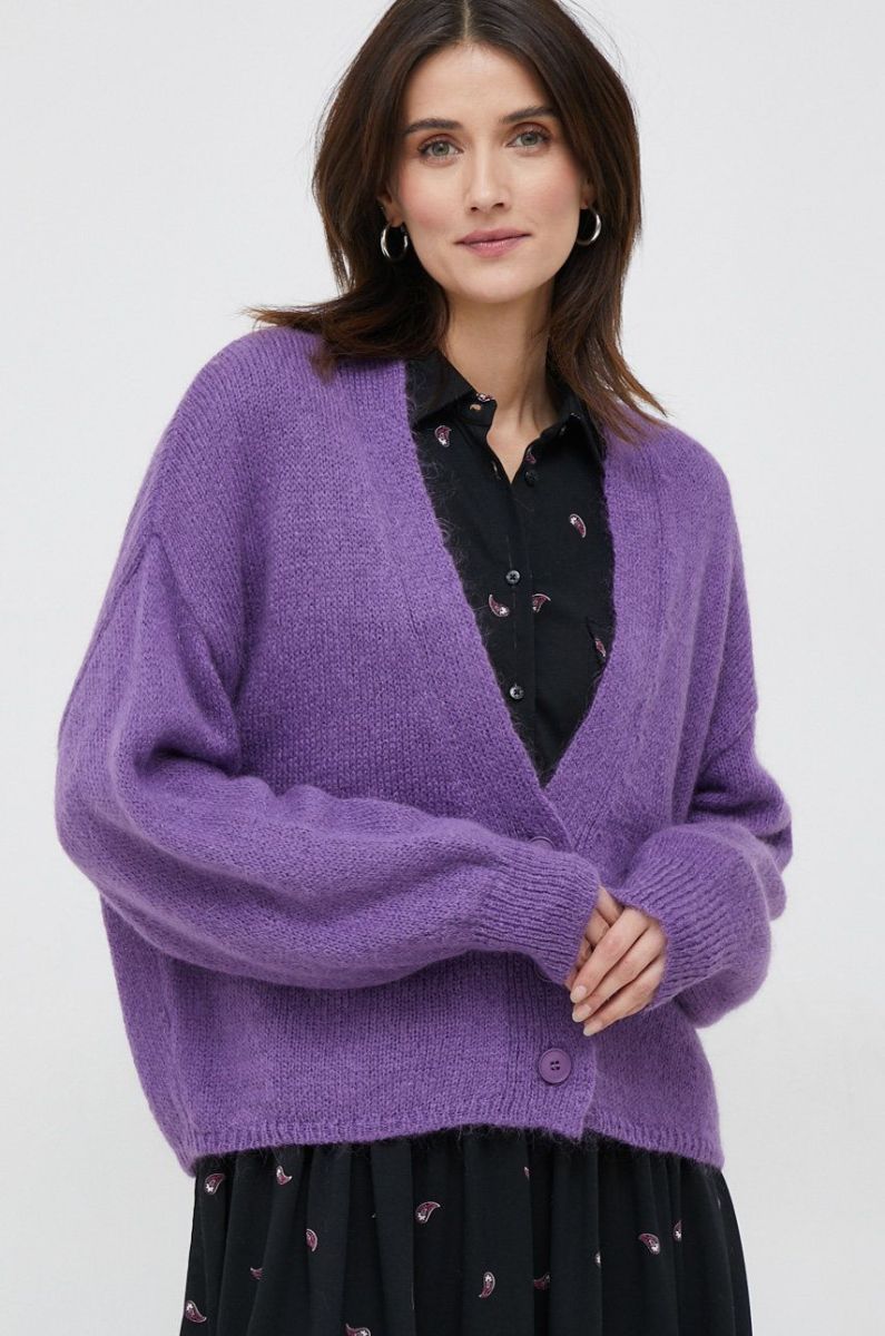 Кардиган з домішкою вовни Sisley жіночий колір фіолетовий легкий