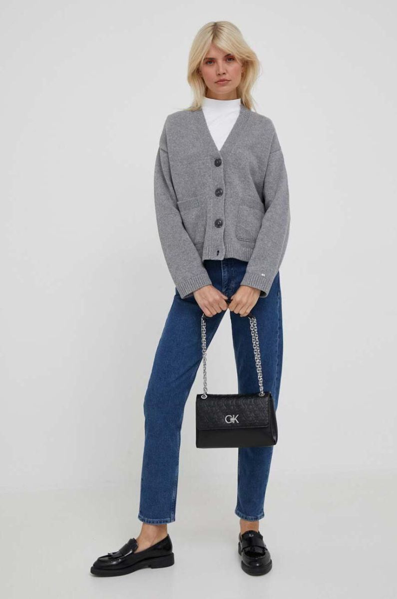 Кардиган з домішкою вовни Tommy Hilfiger колір сірий теплий
