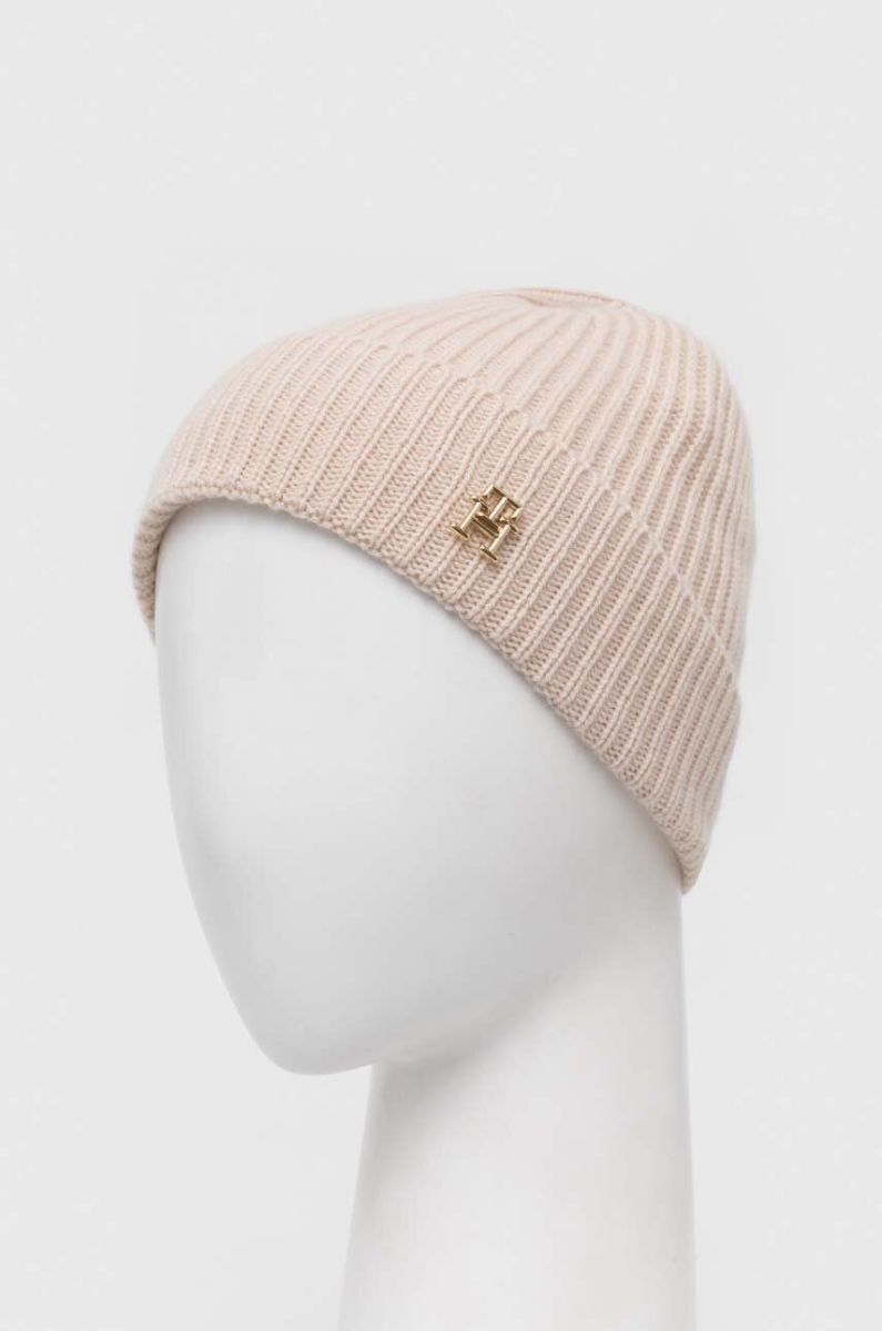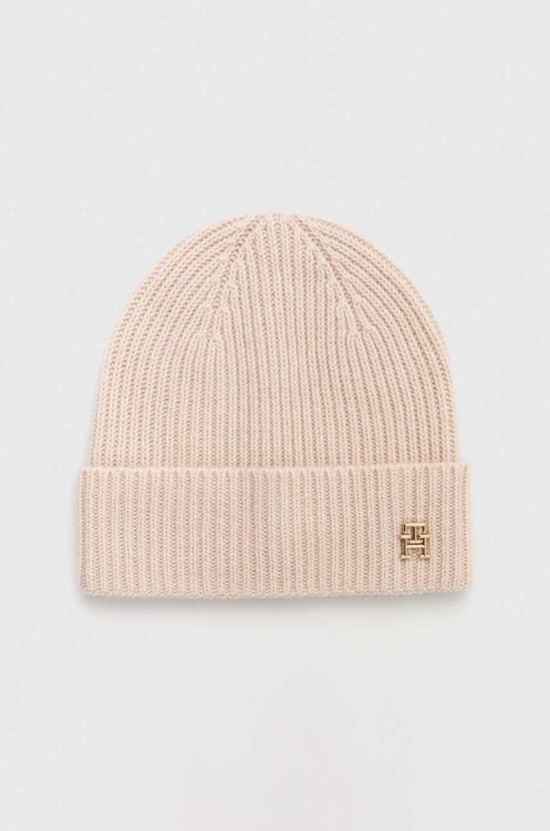 Кашемірова шапка Tommy Hilfiger колір бежевий з тонкого трикотажу вовна