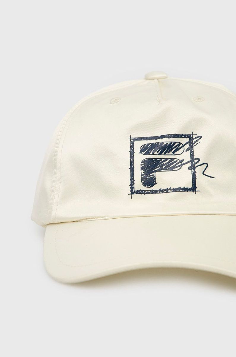 Кепка фасону snapback із колекції Fila. Модель виготовлена із тканини із принтом.