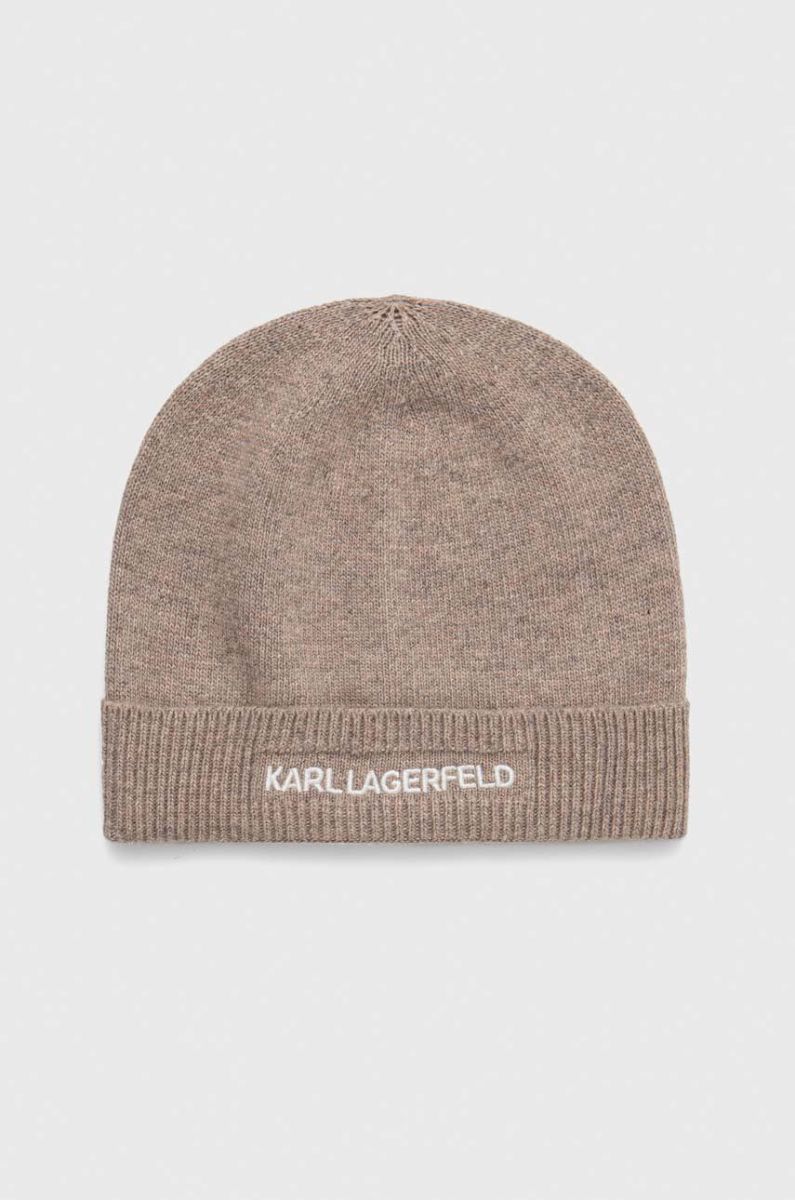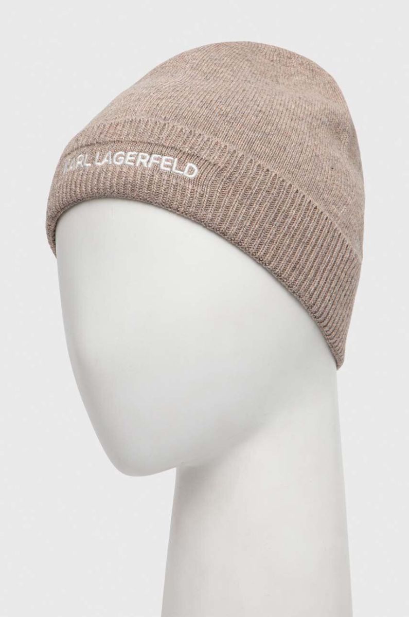 Кепка з домішкою вовни Karl Lagerfeld колір бежевий з тонкого трикотажу Один розмір