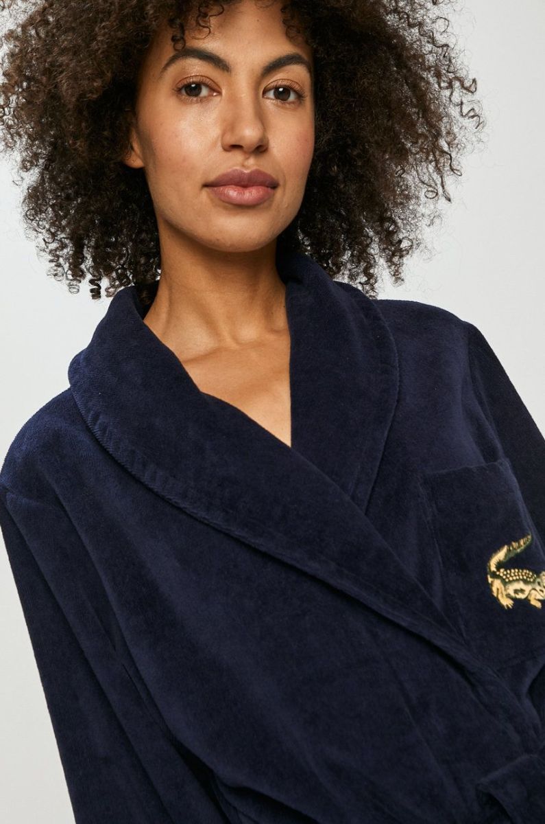 Халат із колекції Lacoste. Модель виготовлена із гладкої бавовни.