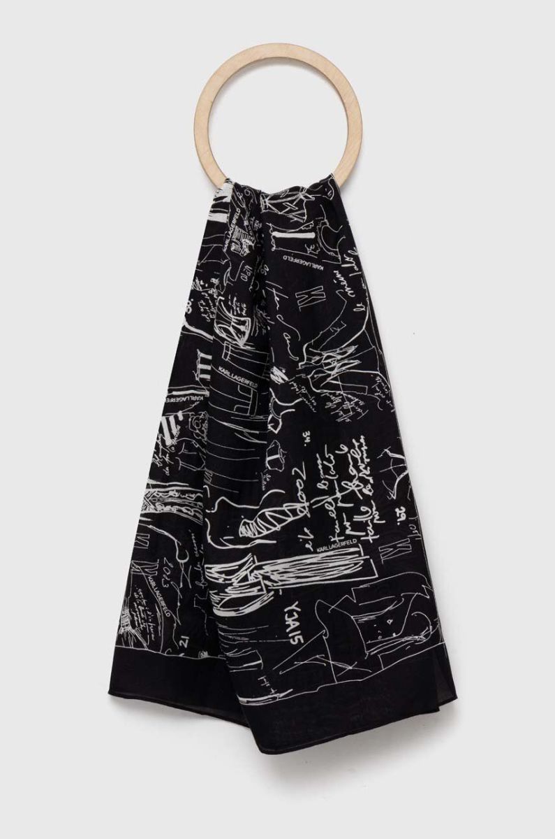 Хустка з домішкою шовку Karl Lagerfeld колір чорний візерунок (3351765)