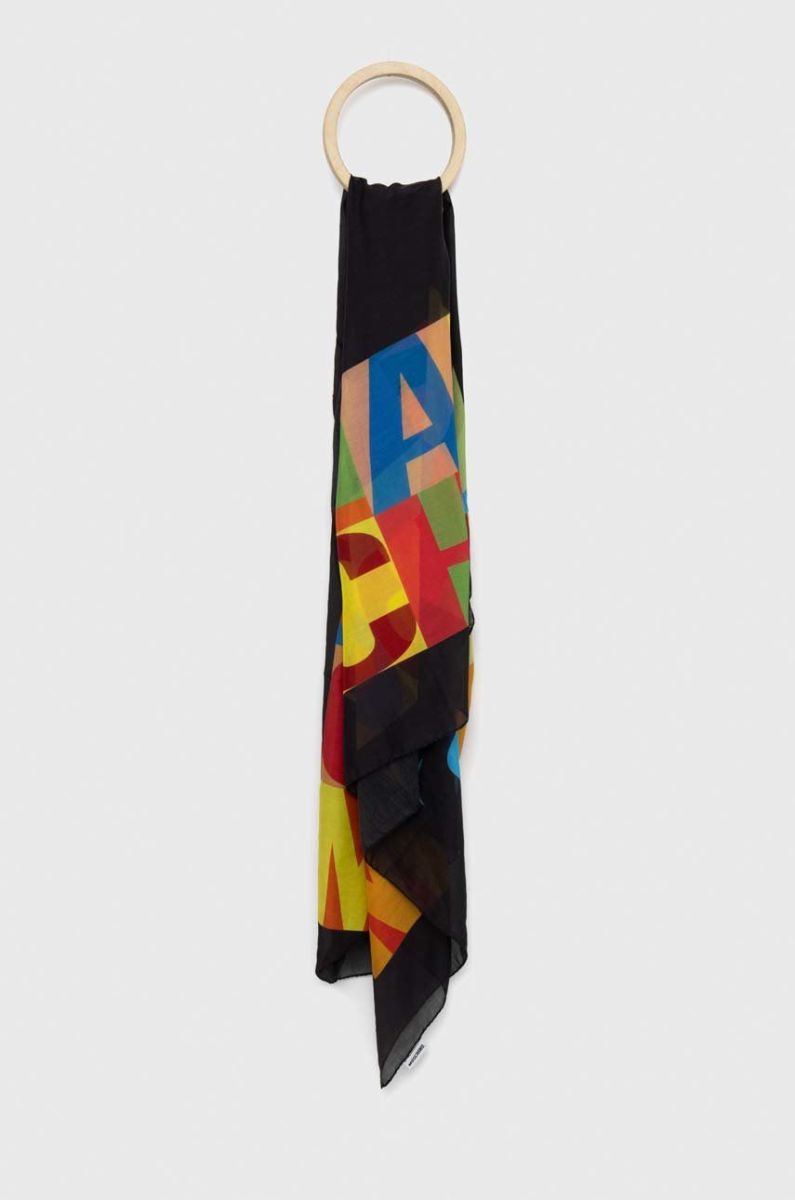 Хустка з домішкою шовку Moschino колір чорний візерунок