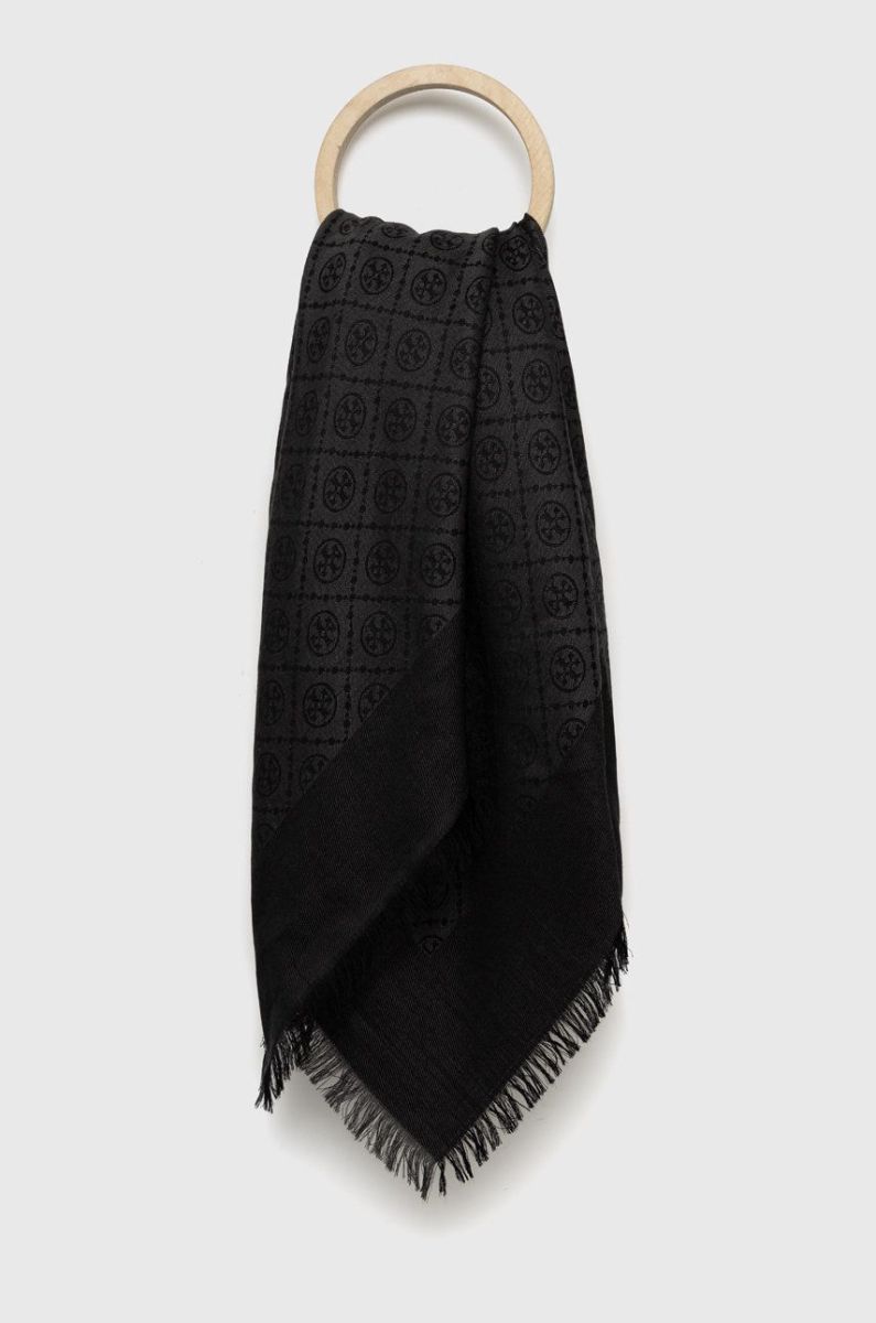 Хустка з домішкою шовку Tory Burch колір чорний однотонна