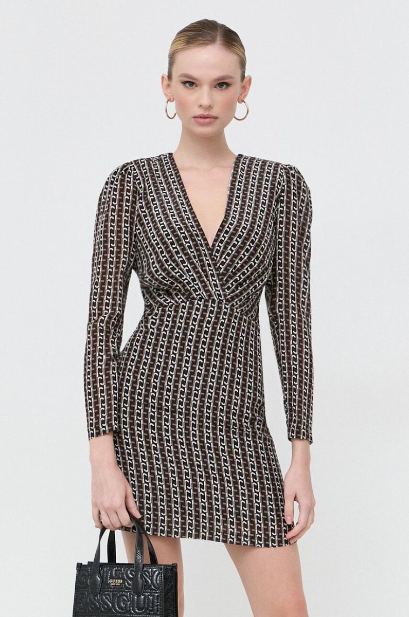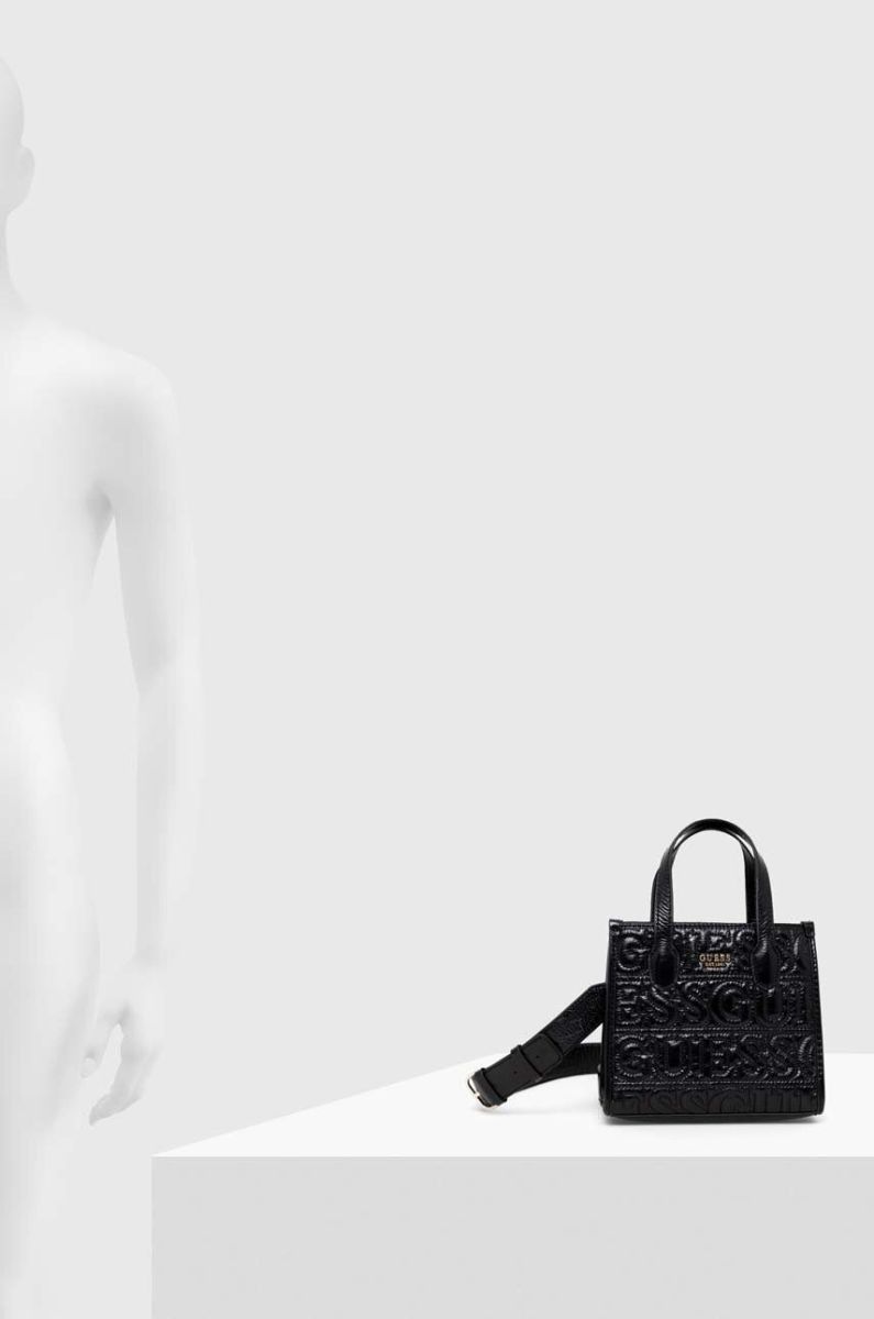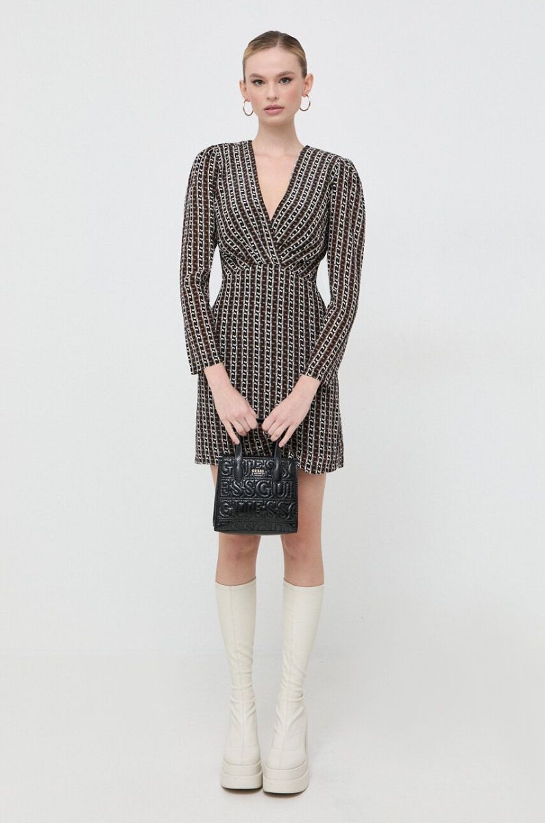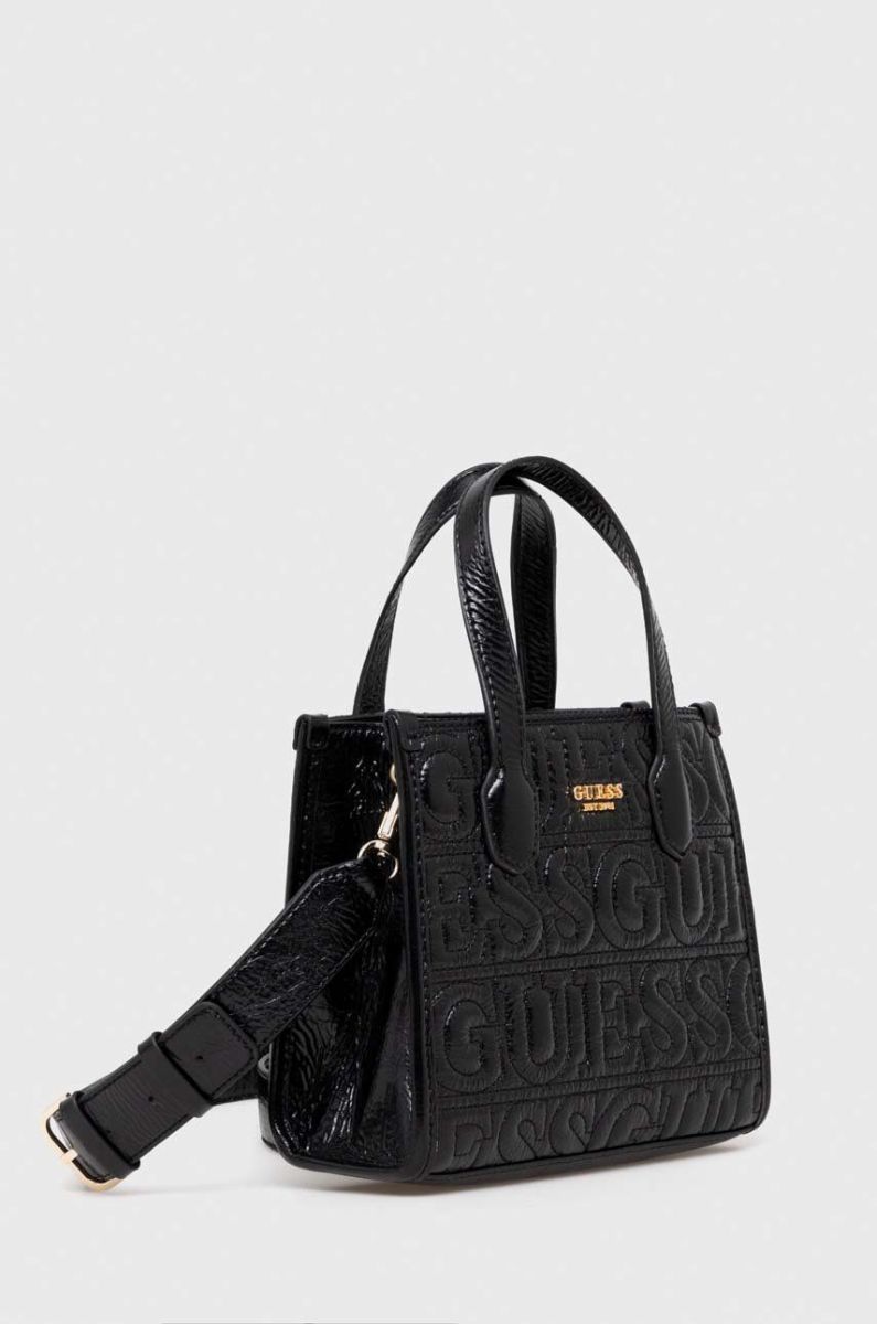 Середнього розміру сумка-клатч із колекції Guess. Застібна модель виготовлена із текстильного матеріалу.