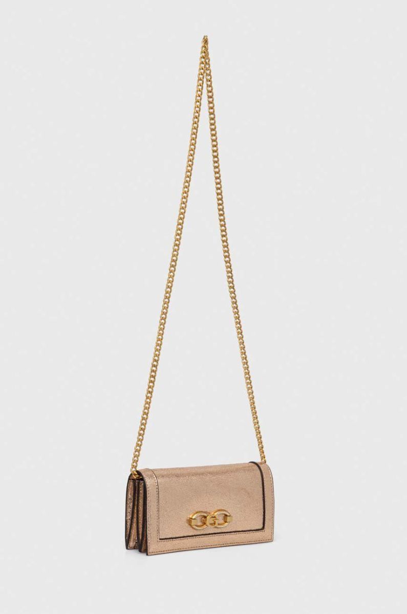 Середнього розміру сумка-клатч з колекції Guess. Застібна модель виконана зі штучної шкіри. Ефектний, блискучий матеріал.