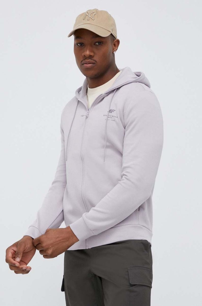 Кофта 4F чоловіча колір рожевий з капюшоном однотонна