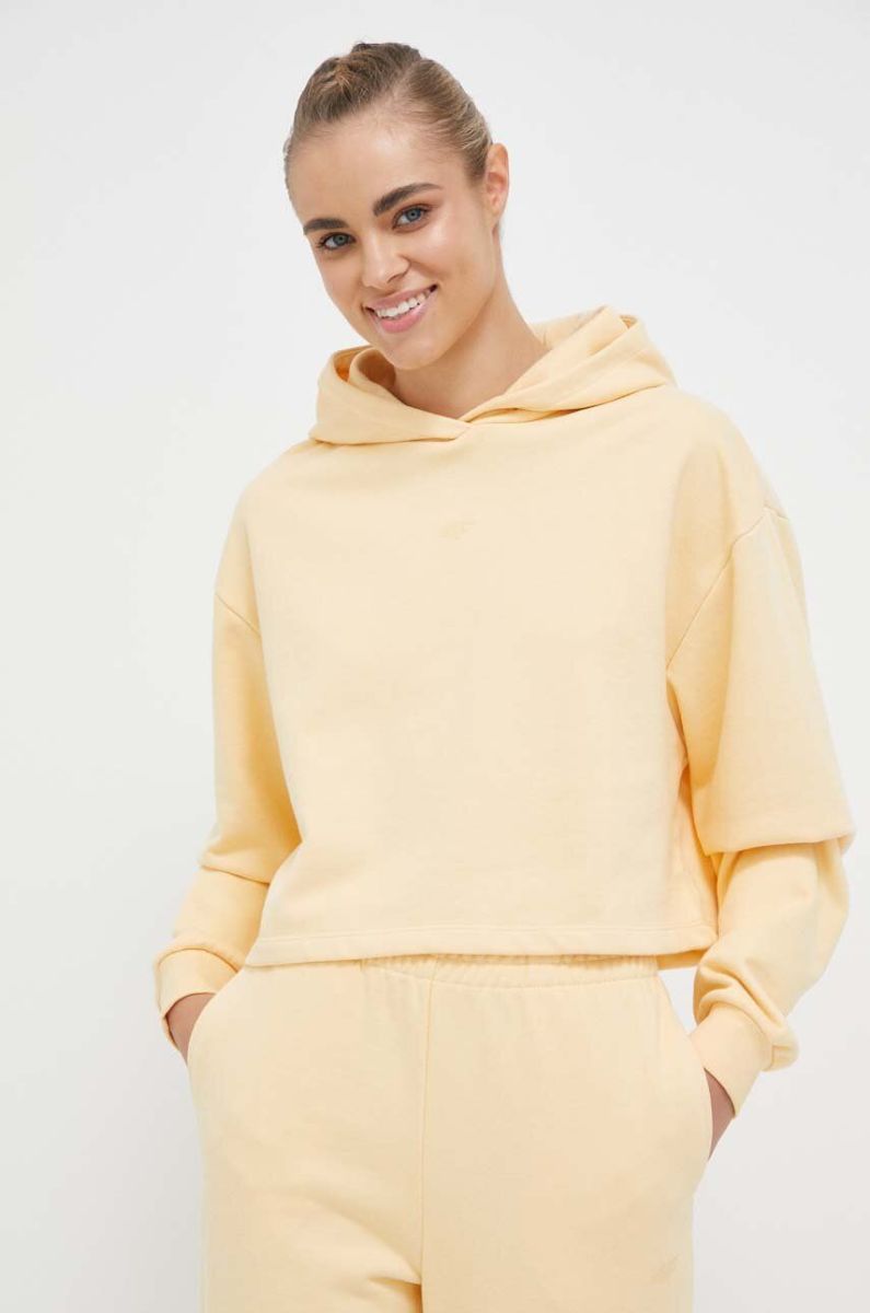 Кофта 4F жіноча колір жовтий з капюшоном однотонна (3244413)