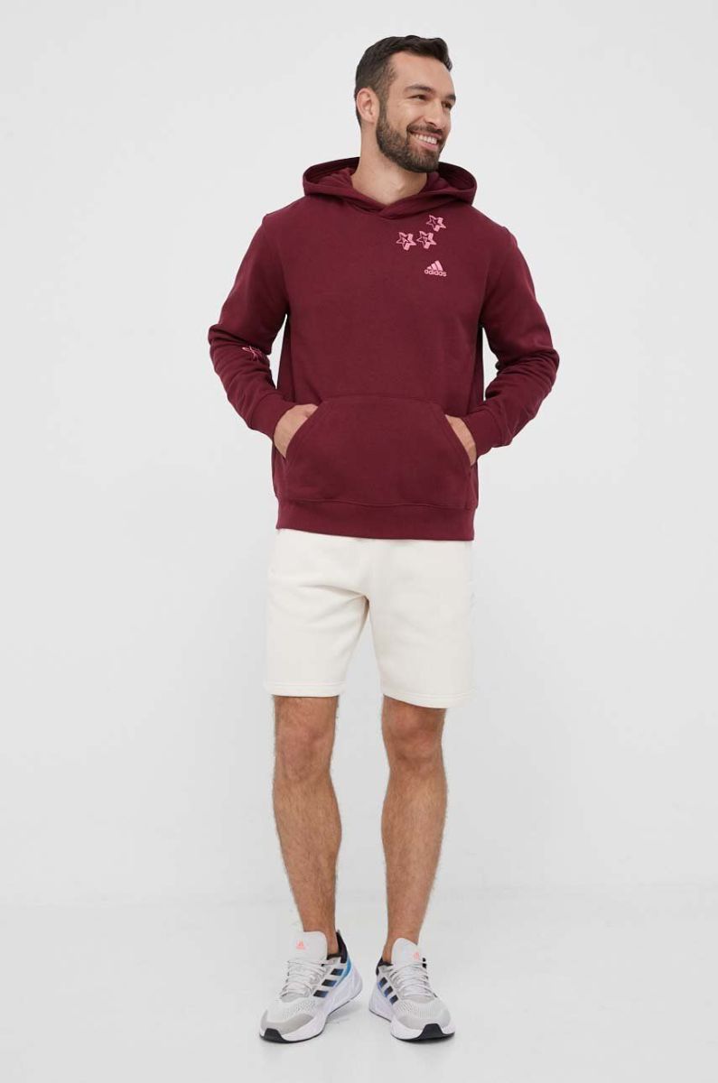 Кофта adidas чоловіча колір бордовий з капюшоном з аплікацією