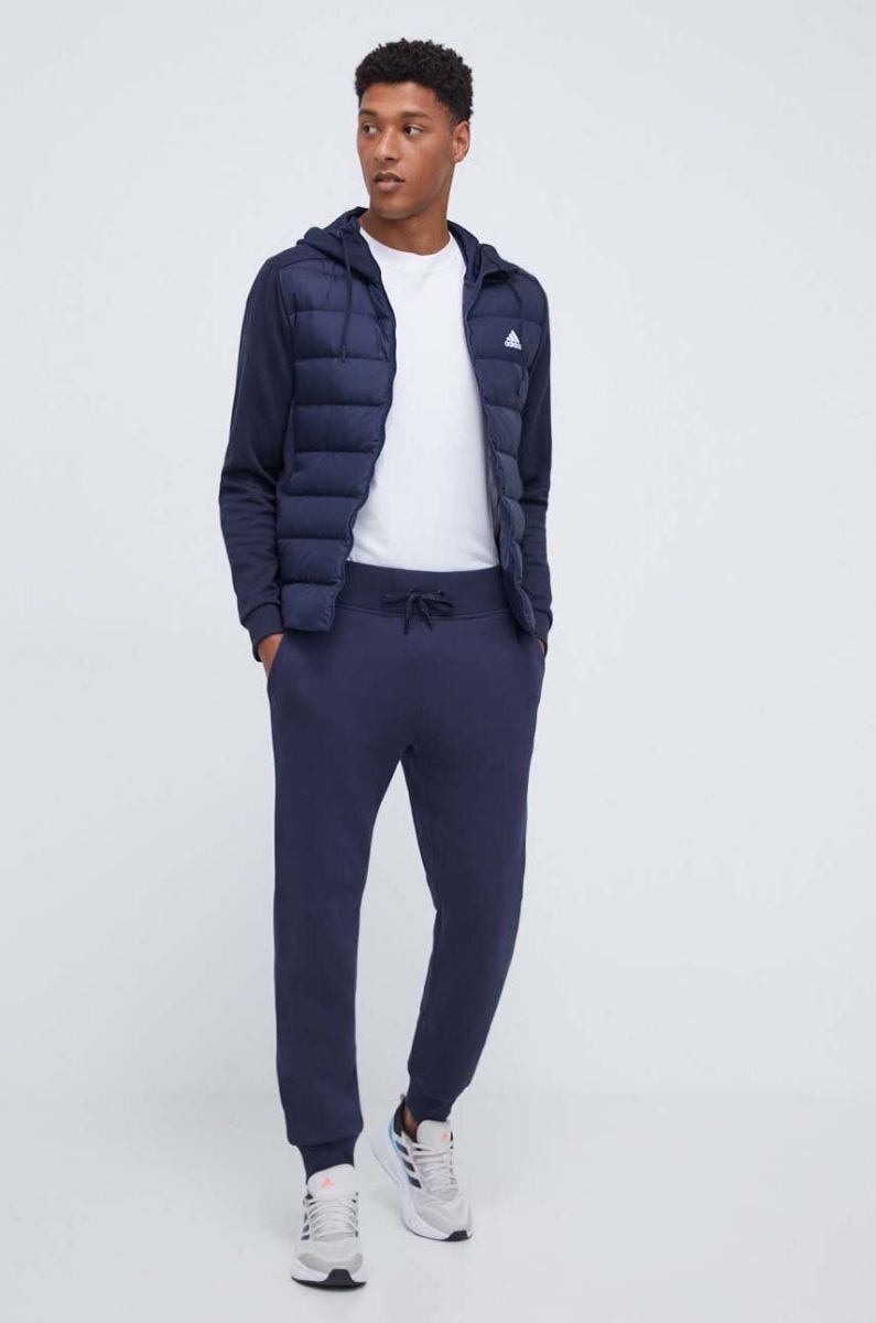 Кофта adidas чоловіча колір синій з капюшоном однотонна