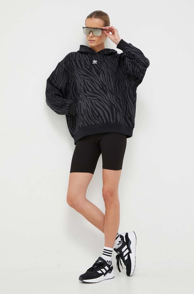 Кофта adidas Originals жіноча колір чорний з капюшоном візерунок