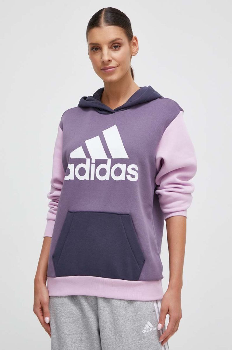Кофта adidas жіноча колір фіолетовий з капюшоном візерунок (3605279)