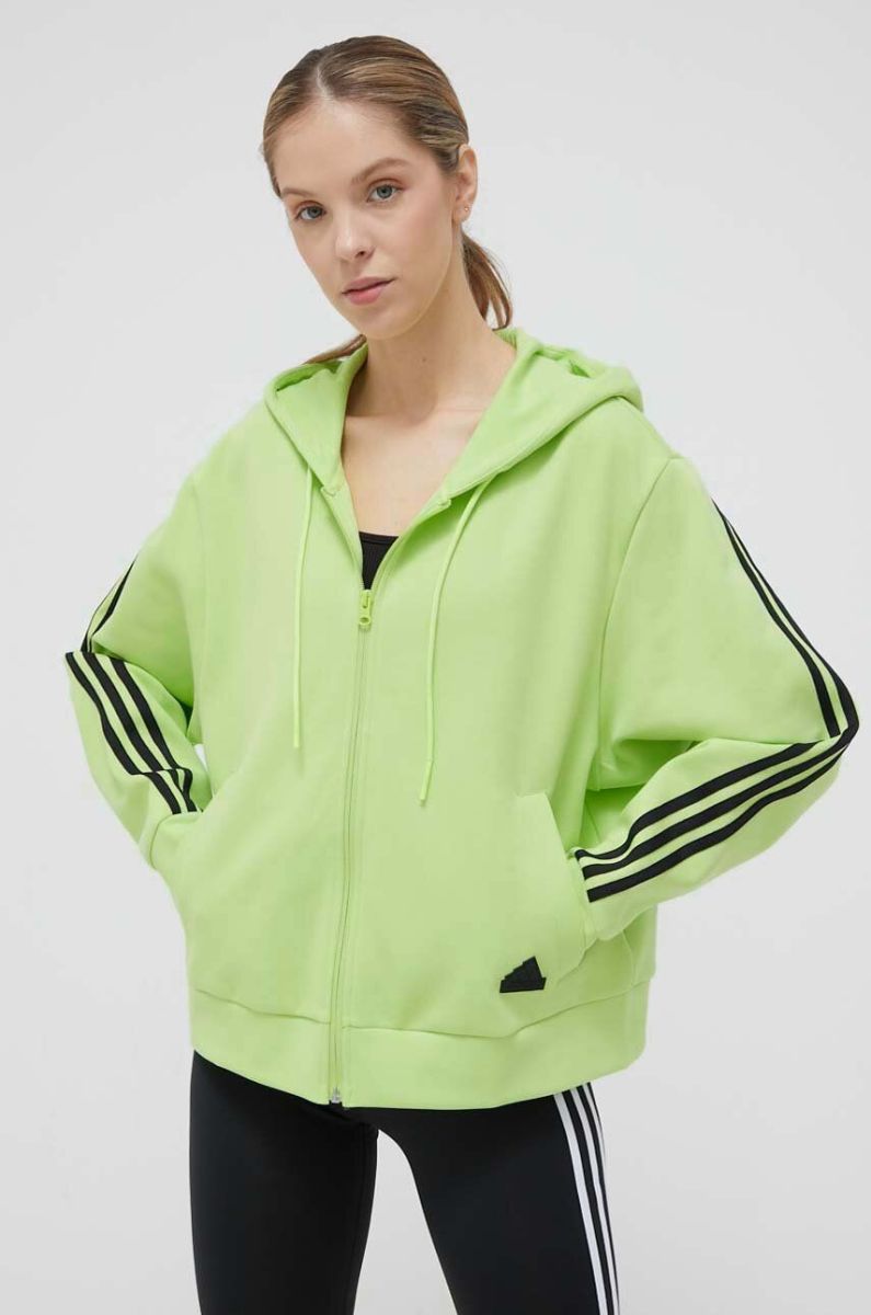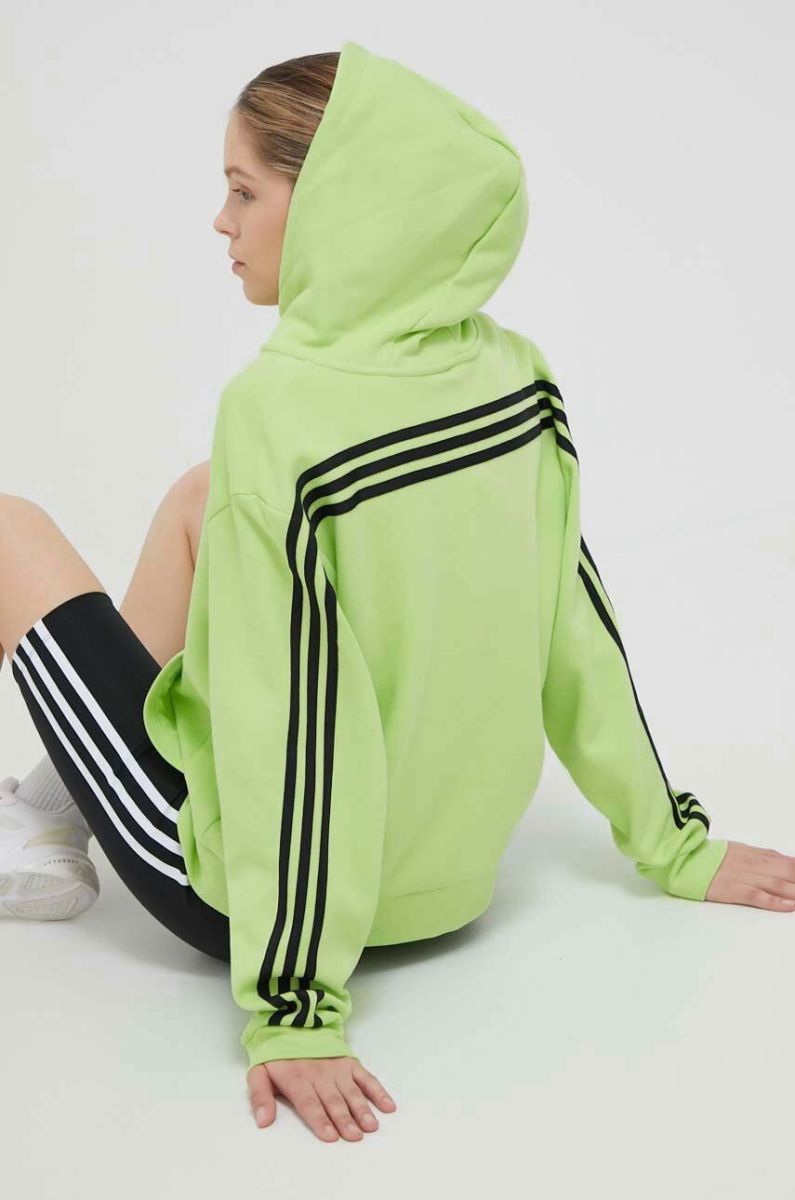 Кофта adidas жіноча колір зелений з капюшоном з аплікацією (3309806)
