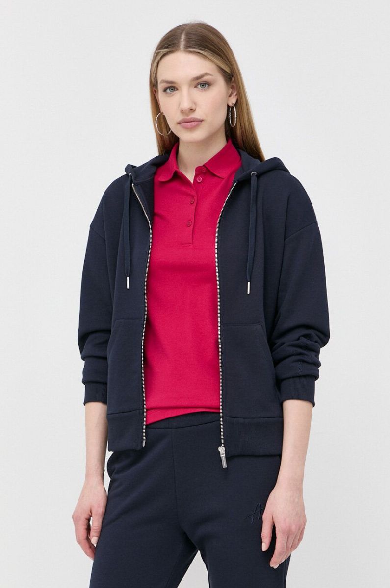 Кофта Armani Exchange жіноча колір синій з капюшоном однотонна