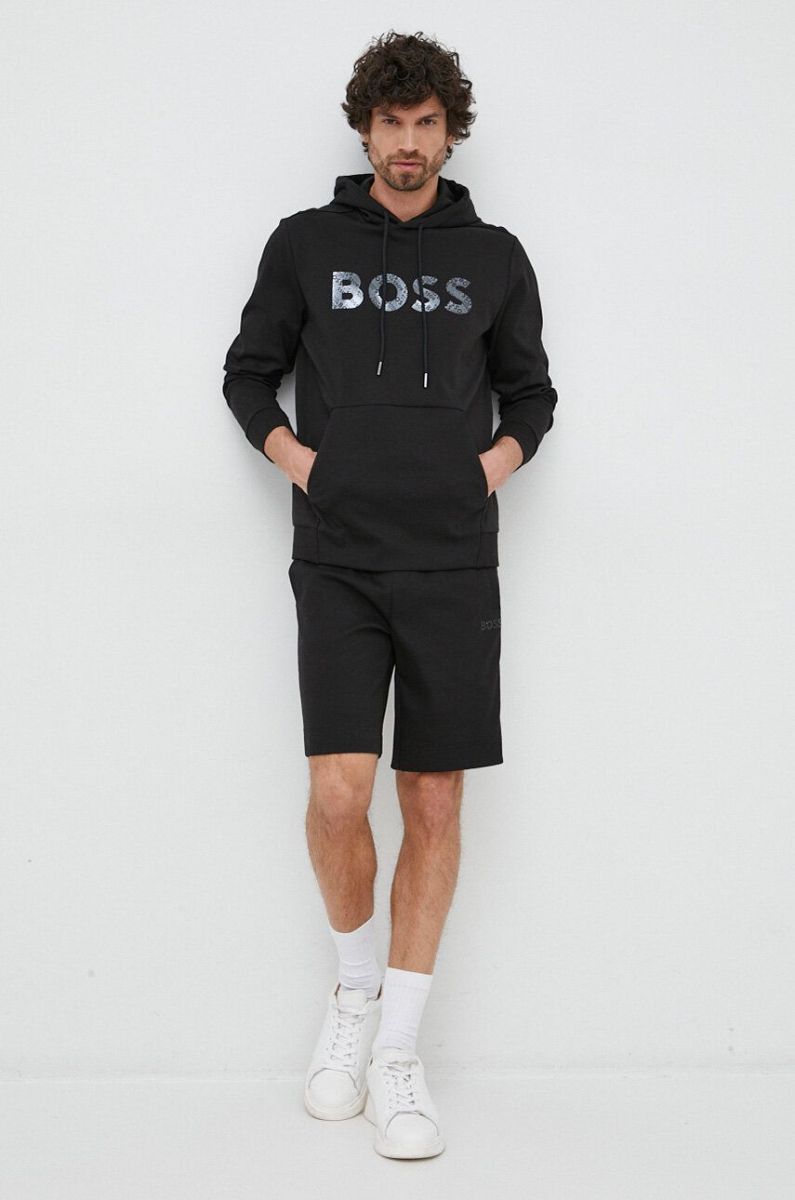 Кофта BOSS BOSS GREEN чоловіча колір чорний з капюшоном з принтом (3130360)