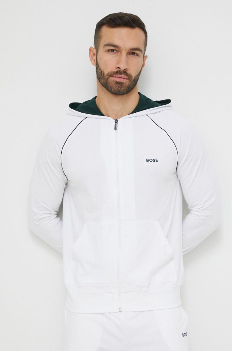 Кофта BOSS чоловіча колір бежевий з капюшоном однотонна (3005562)