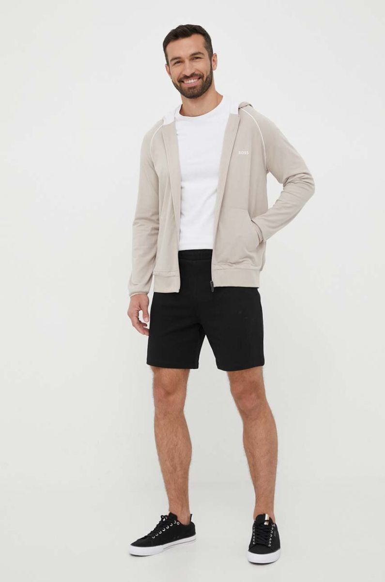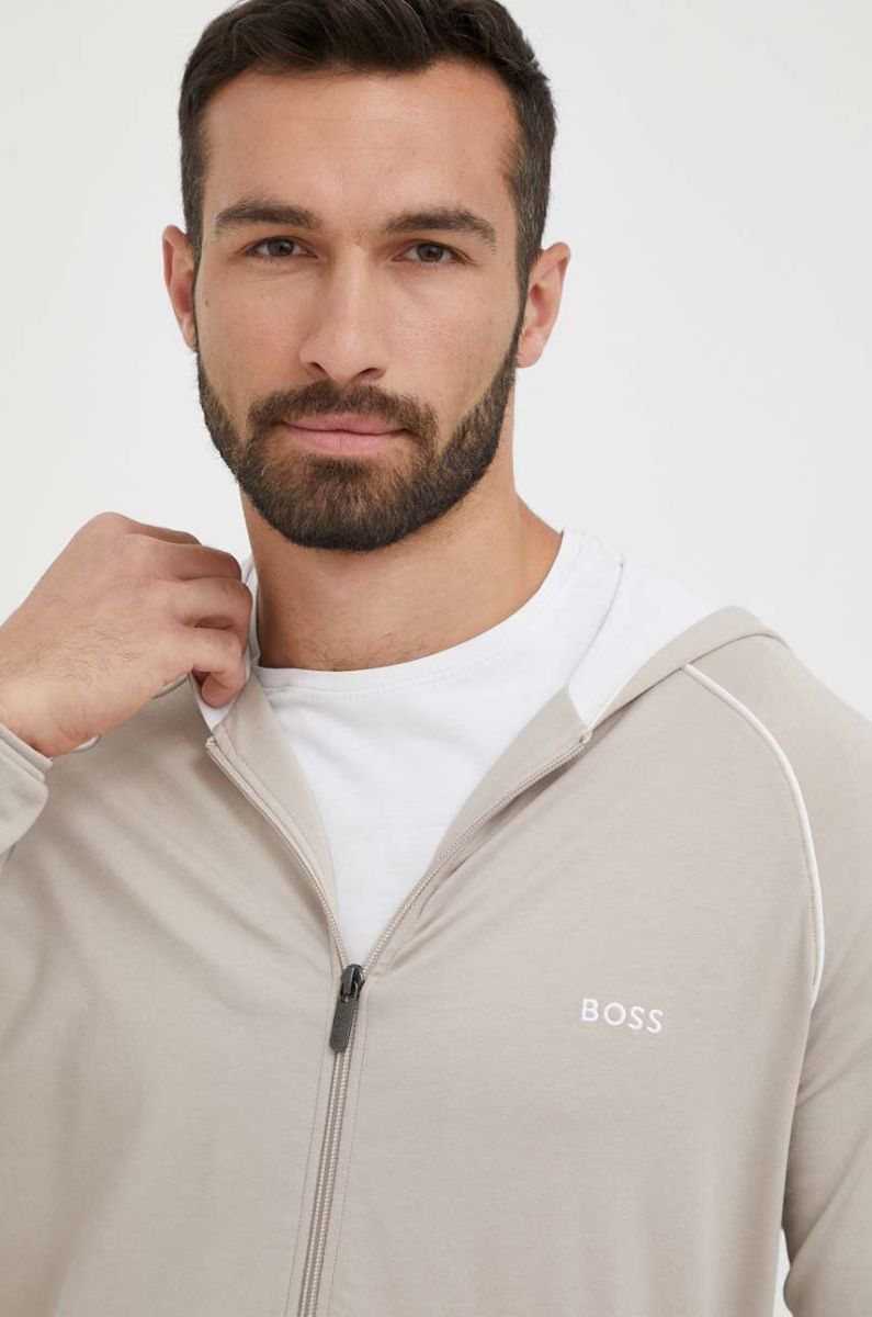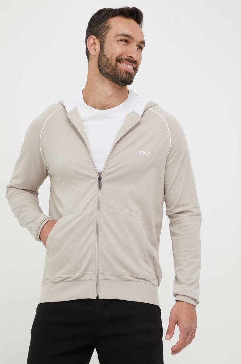 Кофта BOSS чоловіча колір бежевий з капюшоном однотонна (3081088)