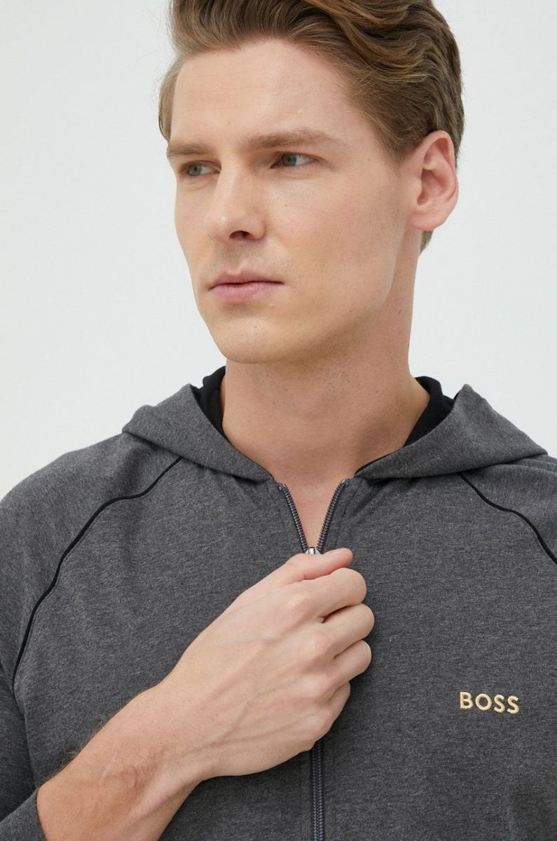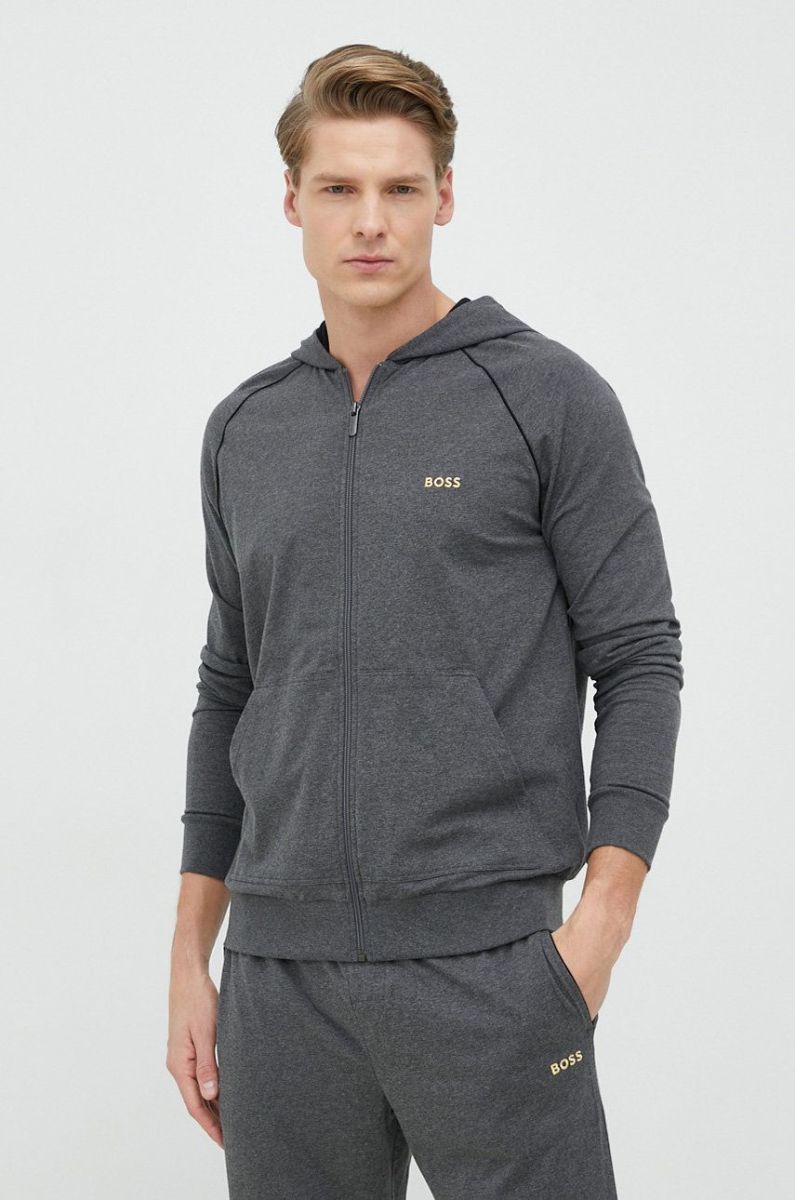 Кофта BOSS чоловіча колір сірий з капюшоном однотонна (2894921)