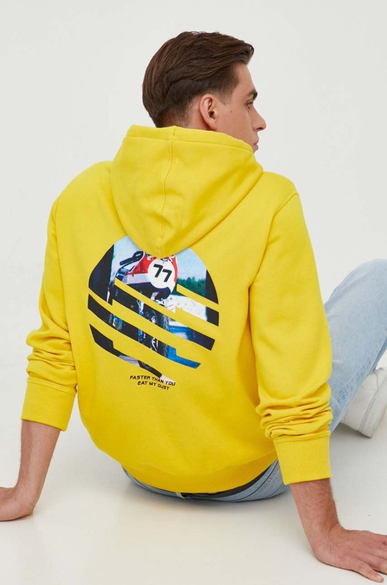 Кофта Boss Orange BOSS ORANGE чоловіча колір жовтий з капюшоном з принтом