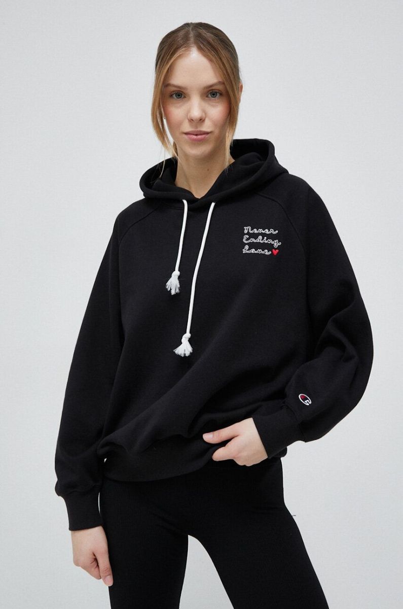 Кофта Champion жіноча колір чорний з капюшоном з принтом