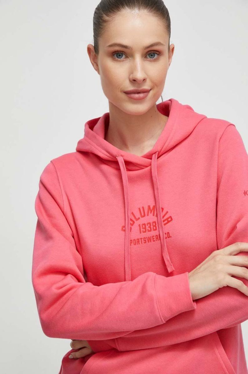 Кофта Columbia жіноча колір рожевий з капюшоном з принтом
