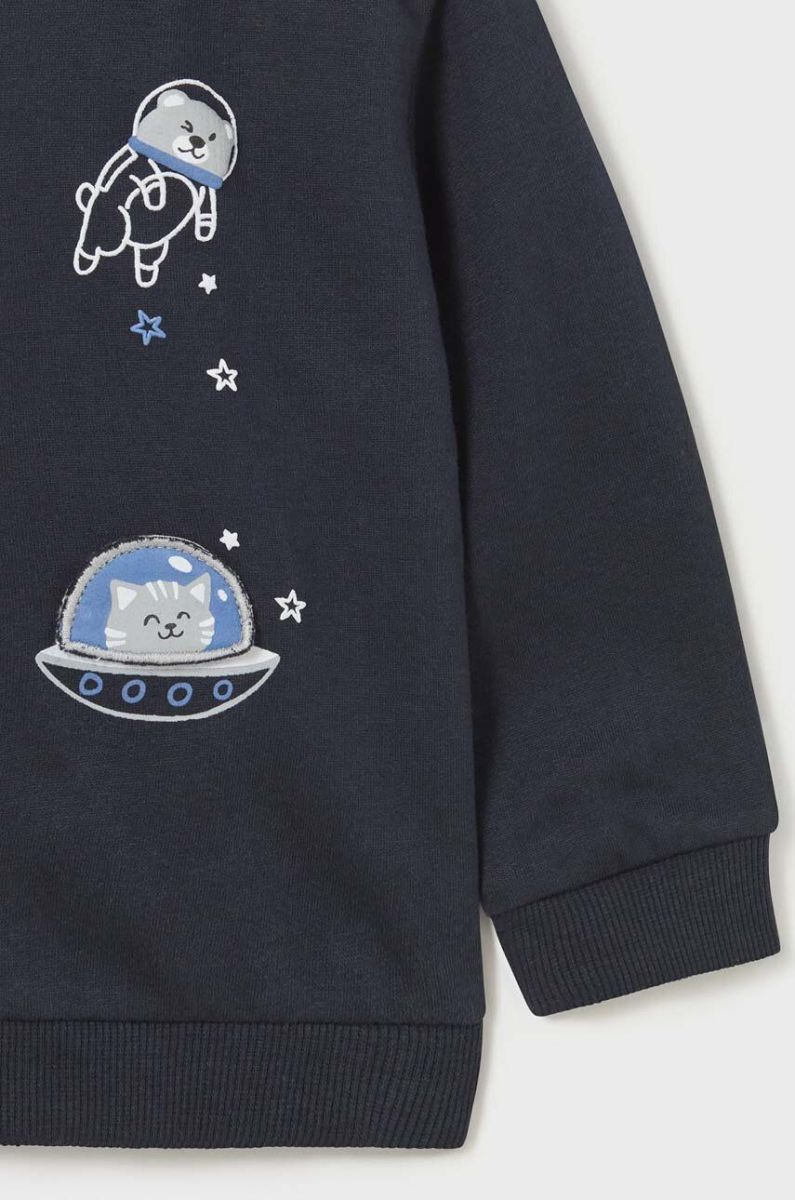 Кофта для немовлят Mayoral колір синій з капюшоном з аплікацією (3418395)