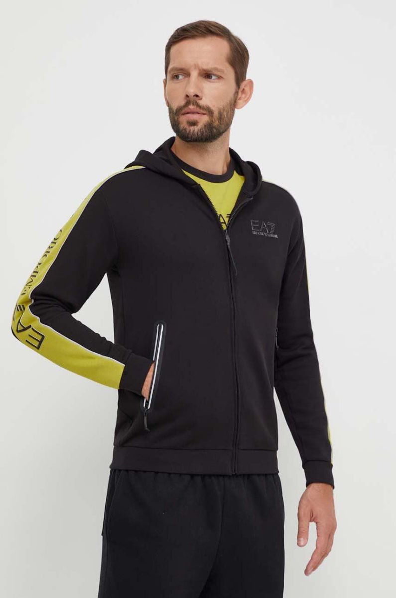 Кофта EA7 Emporio Armani чоловіча колір чорний з капюшоном візерунок