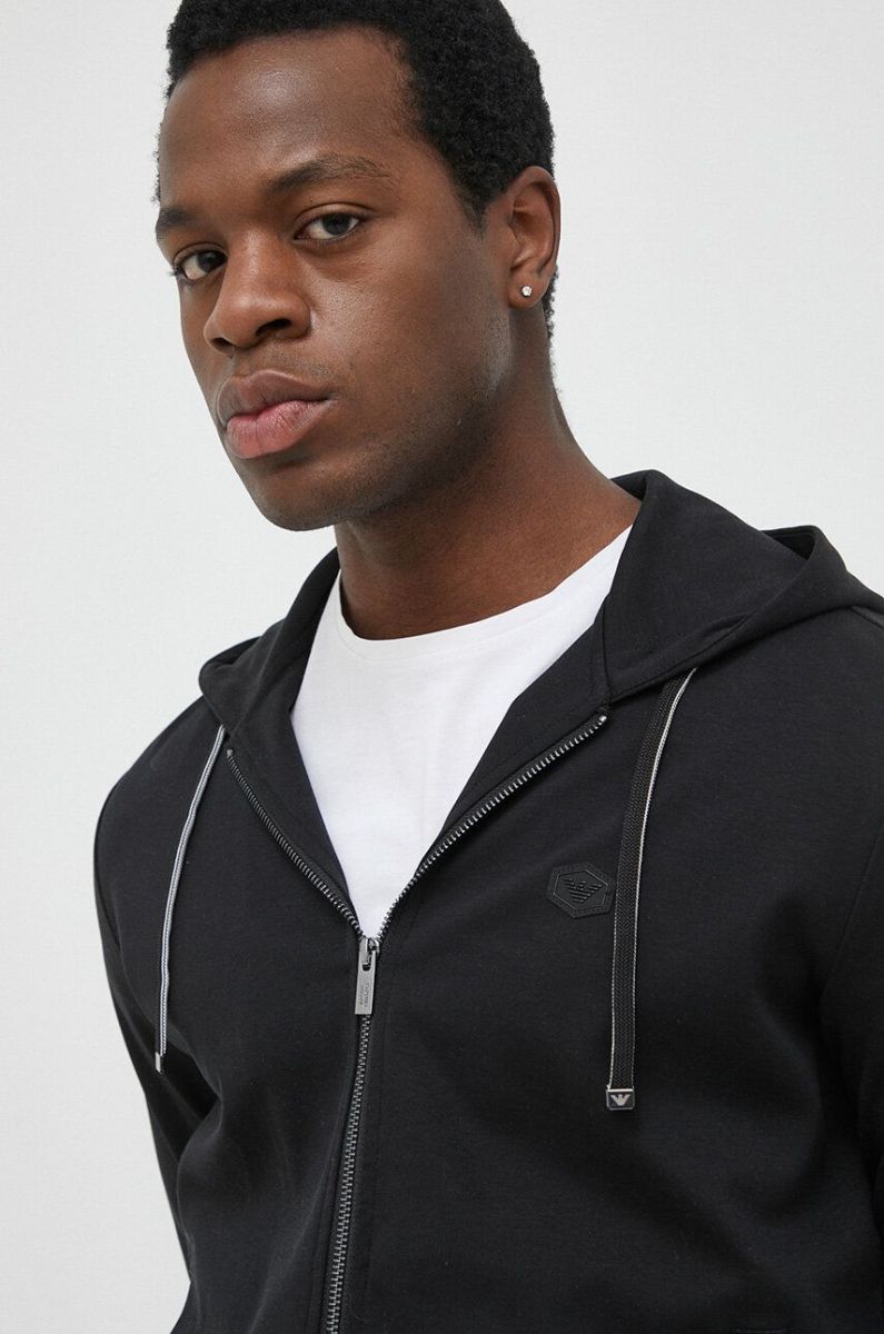 Кофта Emporio Armani чоловіча колір чорний з капюшоном однотонна (3130675)
