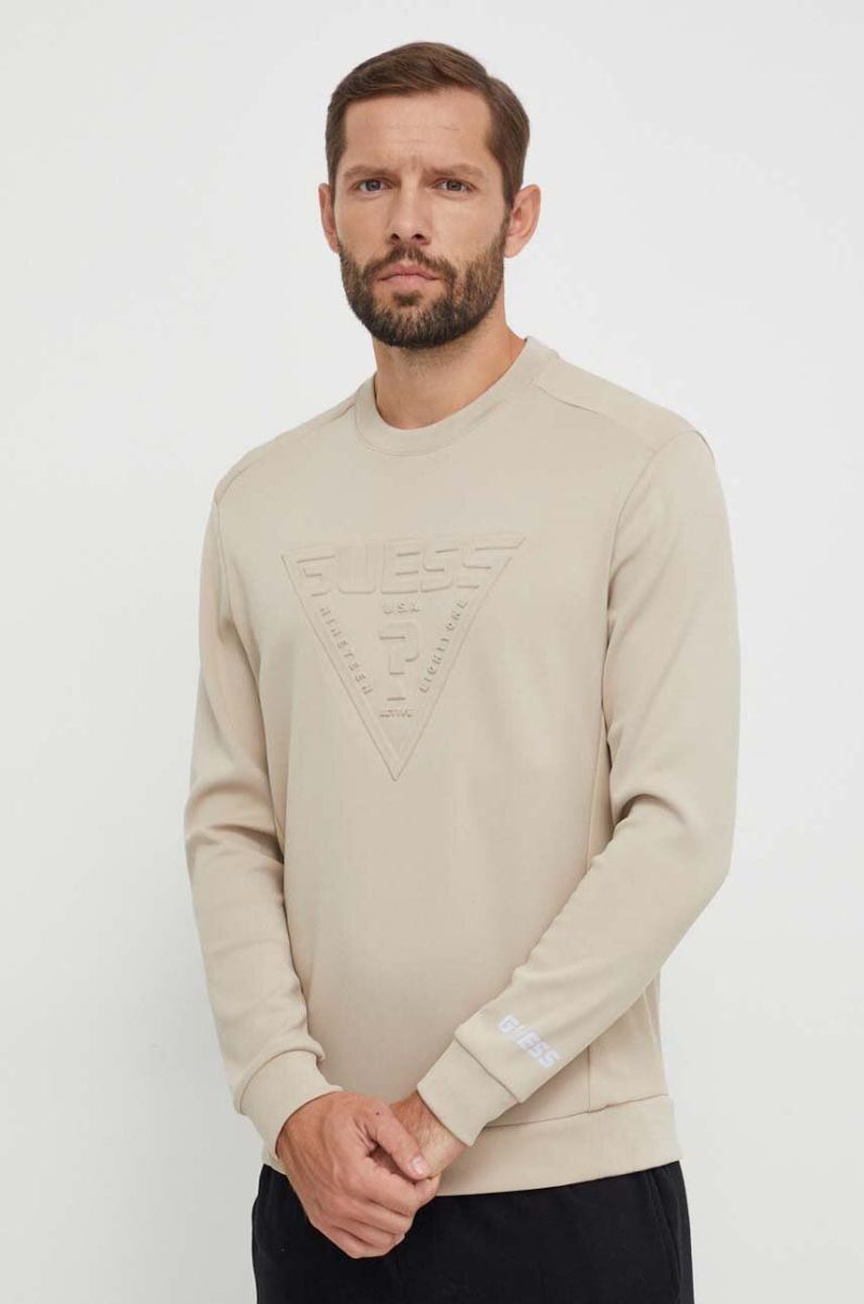 Кофта Guess чоловіча колір бежевий з аплікацією (3609328)