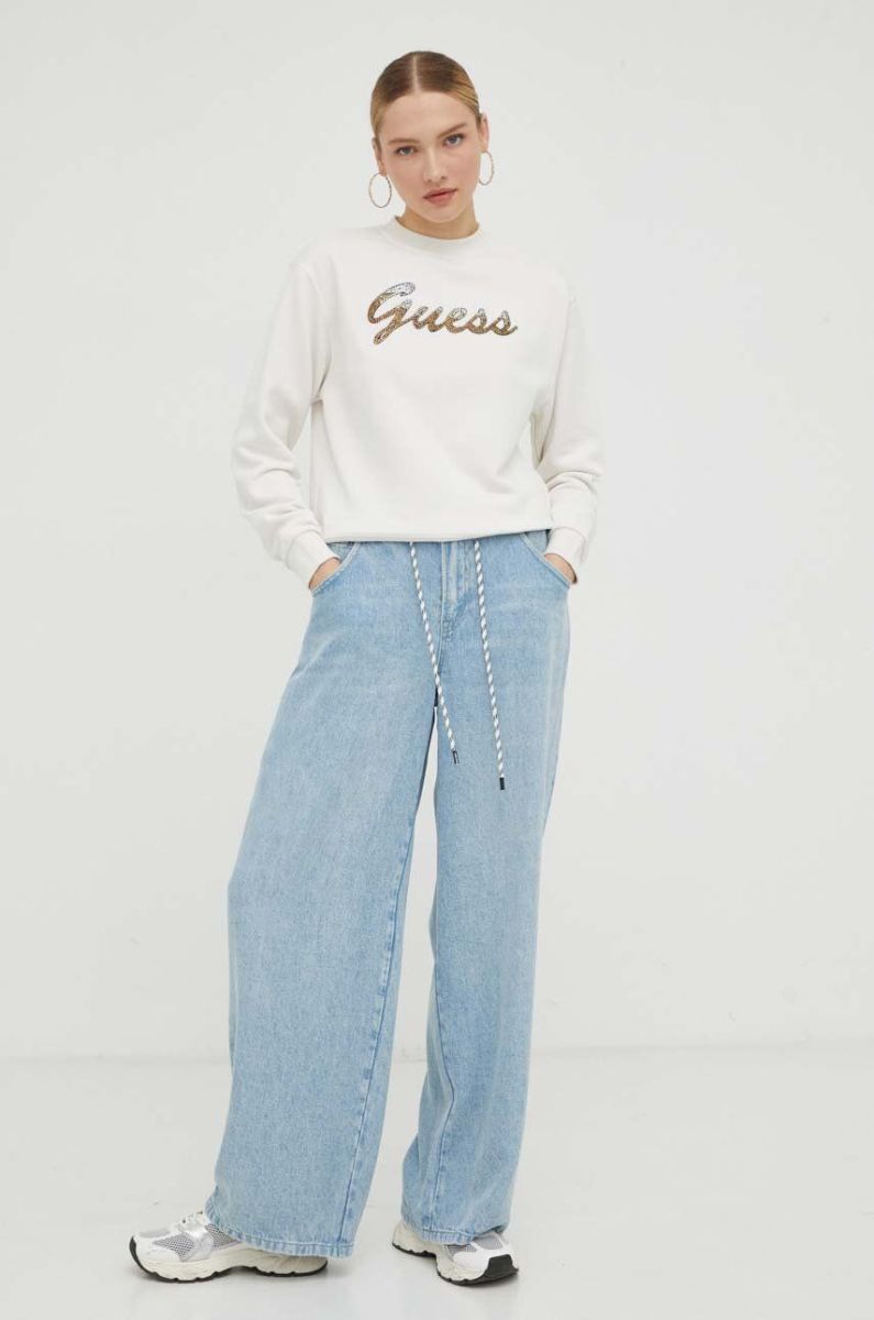 Кофта Guess жіноча колір бежевий з аплікацією (3503662)