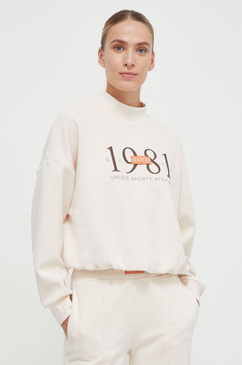 Кофта Guess жіноча колір бежевий з принтом (3553544)