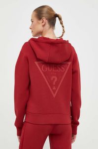 Кофта Guess жіноча колір бордовий з капюшоном з принтом (3517847)