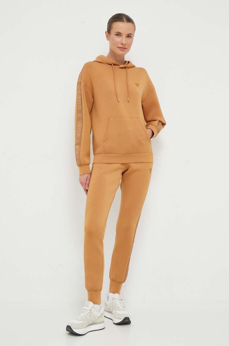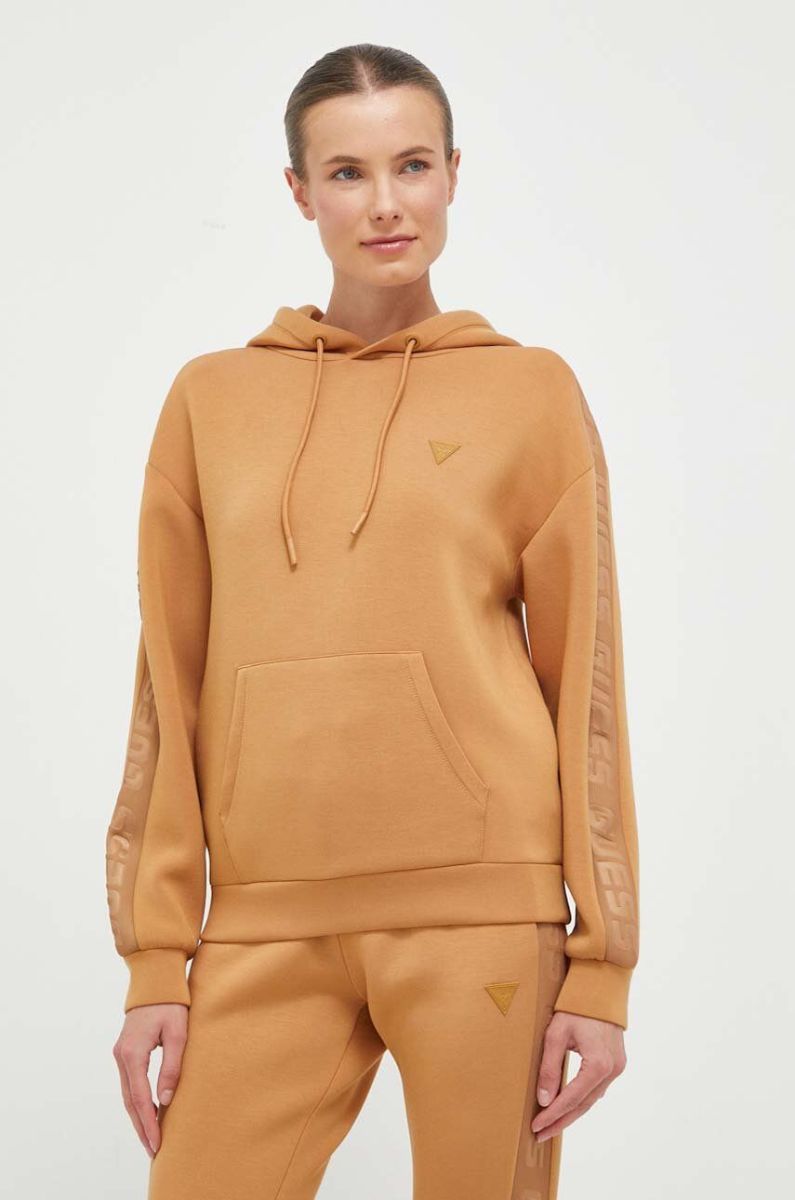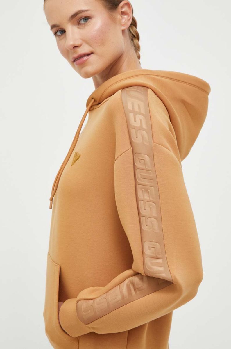 Кофта Guess жіноча колір коричневий з капюшоном з принтом (3516987)