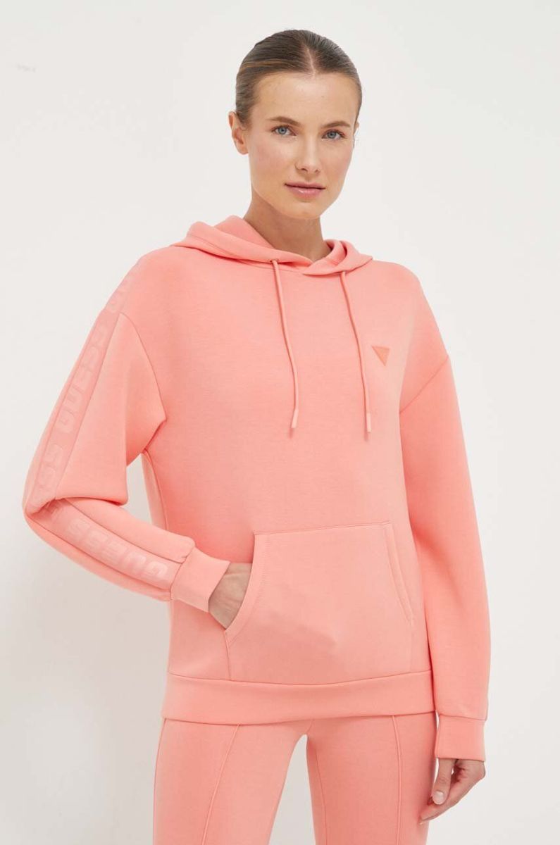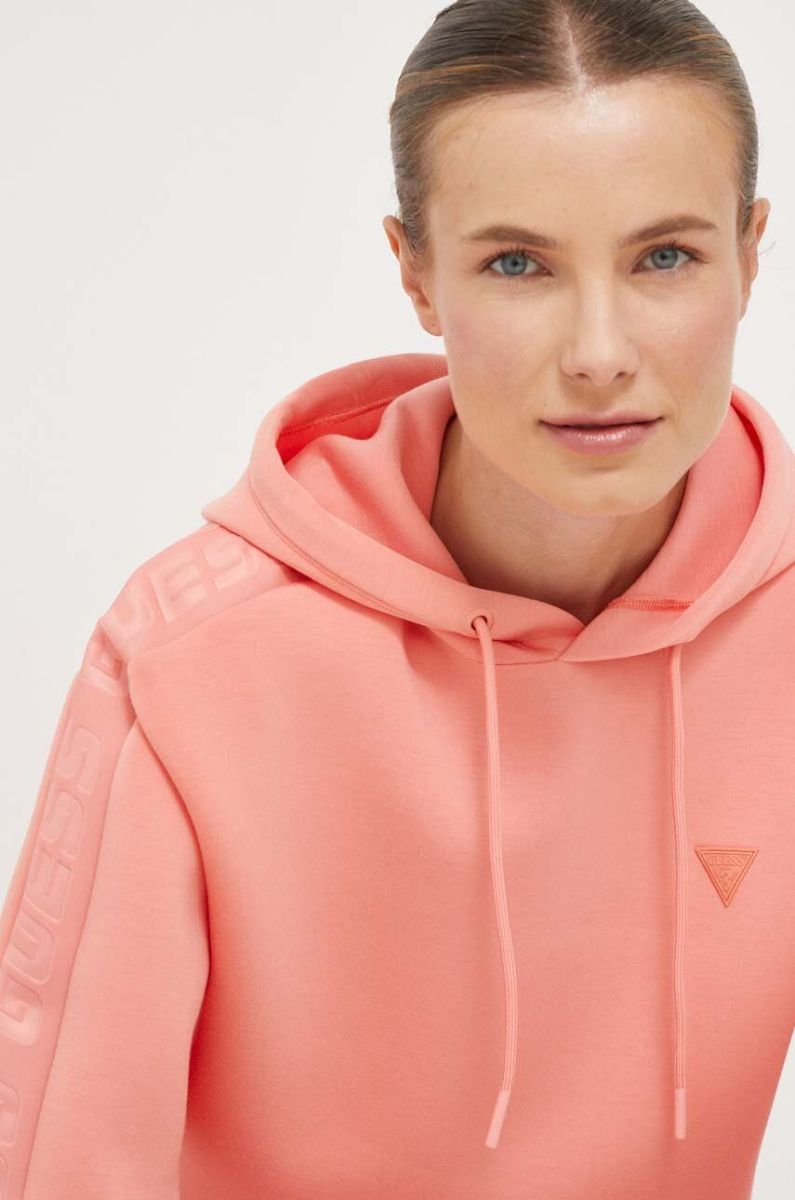 Кофта Guess жіноча колір помаранчевий з капюшоном з принтом (3516968)