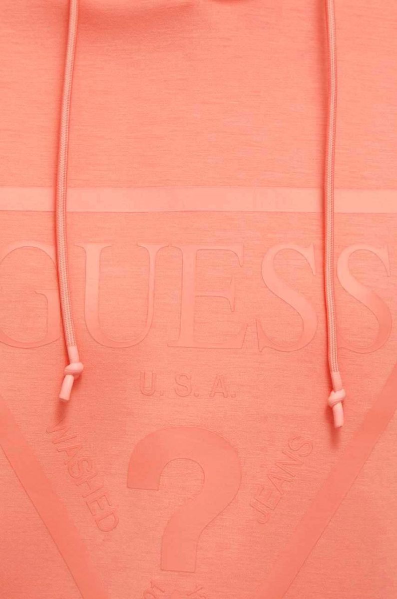 Кофта Guess жіноча колір помаранчевий з капюшоном з принтом (3517836)
