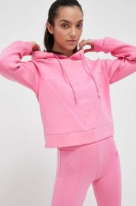 Кофта Guess жіноча колір рожевий з капюшоном з принтом (3322906)