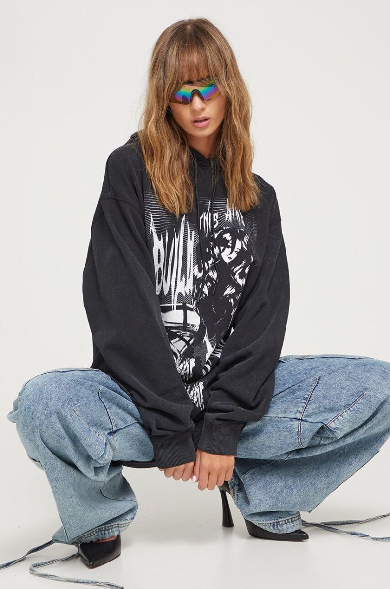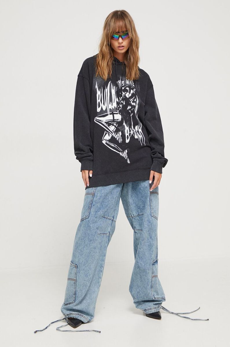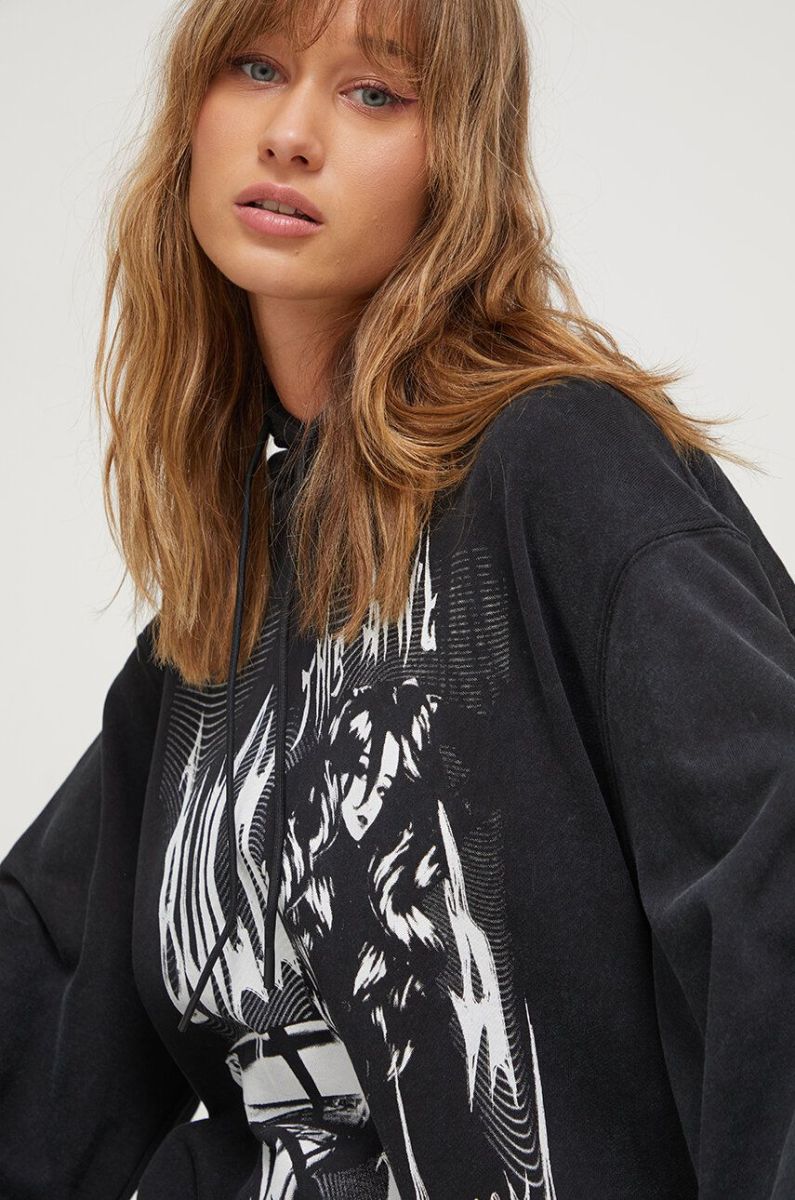 Кофта HUGO жіноча колір чорний з капюшоном з принтом