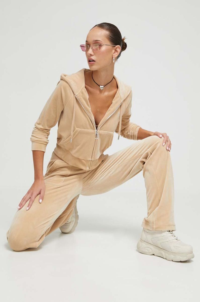 Кофта Juicy Couture жіноча колір коричневий з капюшоном з аплікацією