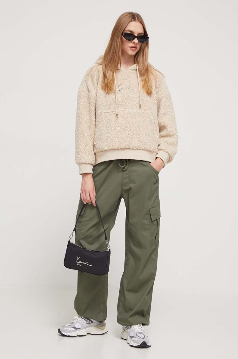Кофта Karl Kani жіноча колір бежевий з капюшоном однотонна (3566856)