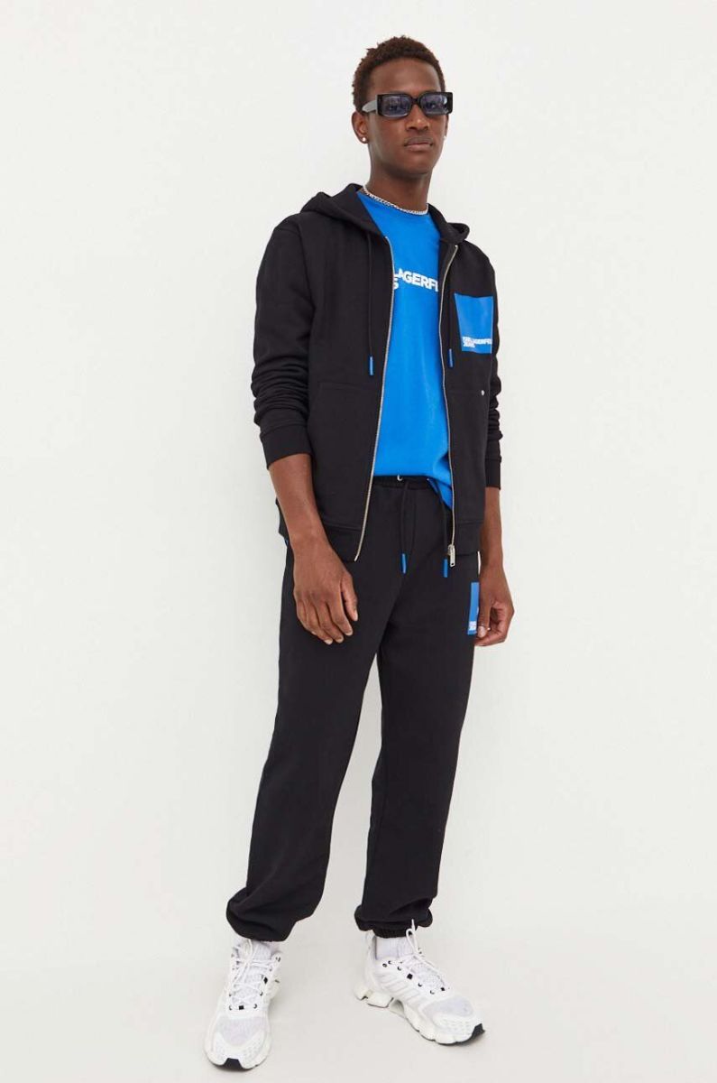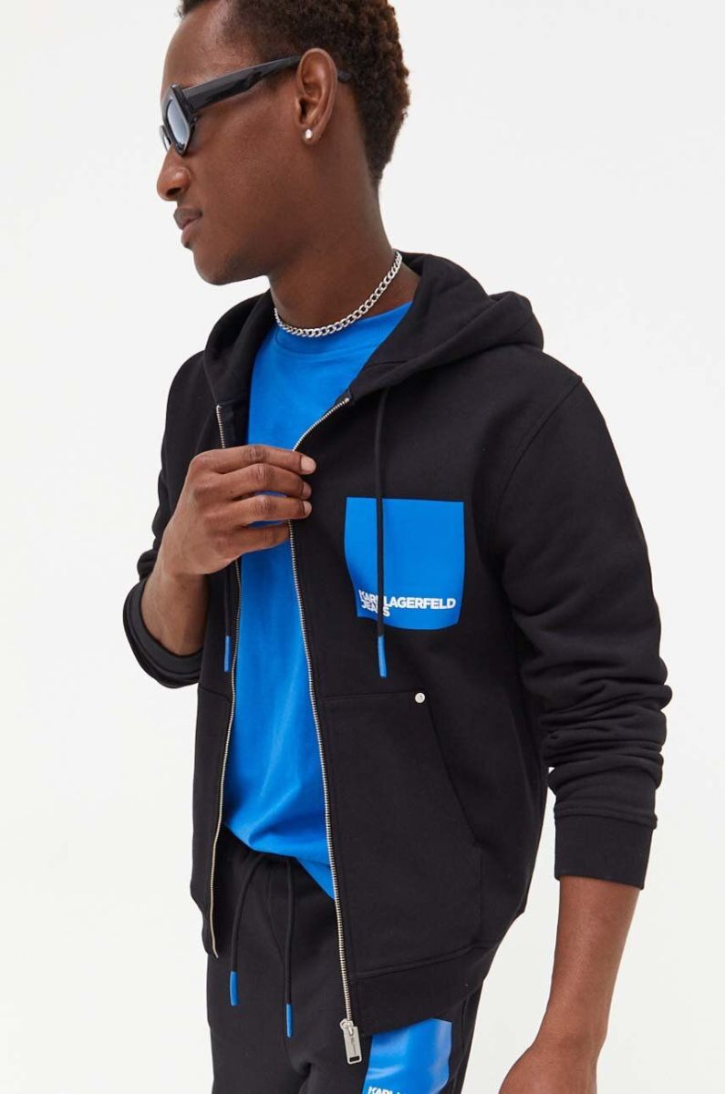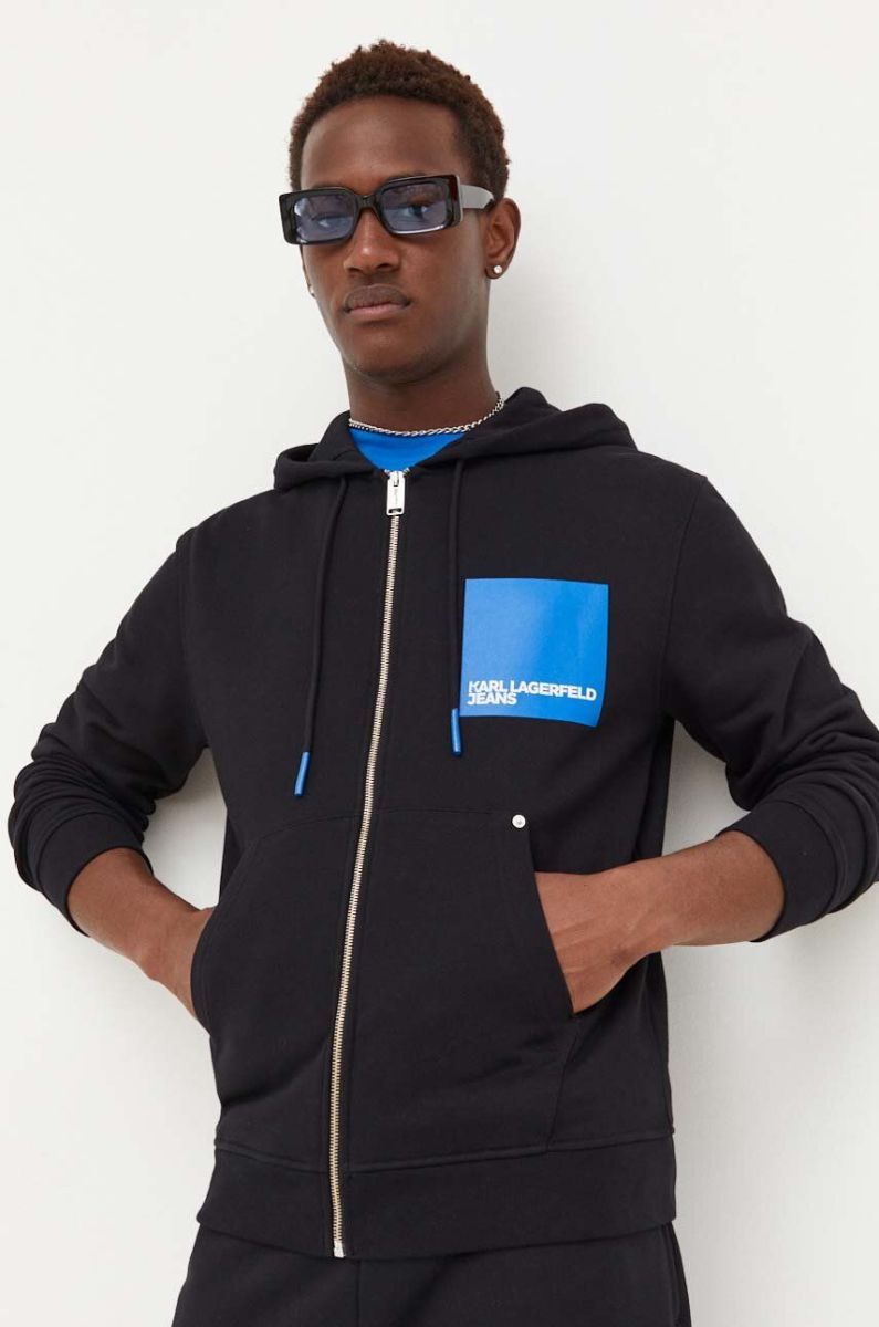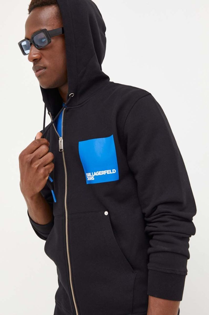 Кофта Karl Lagerfeld Jeans чоловіча колір чорний з капюшоном з принтом (3351296)
