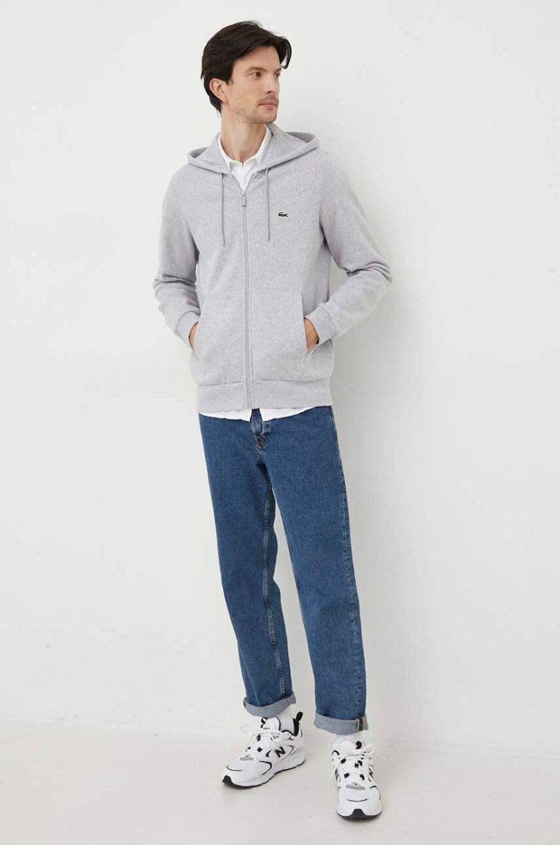 Кофта Lacoste чоловіча колір сірий з капюшоном однотонна
