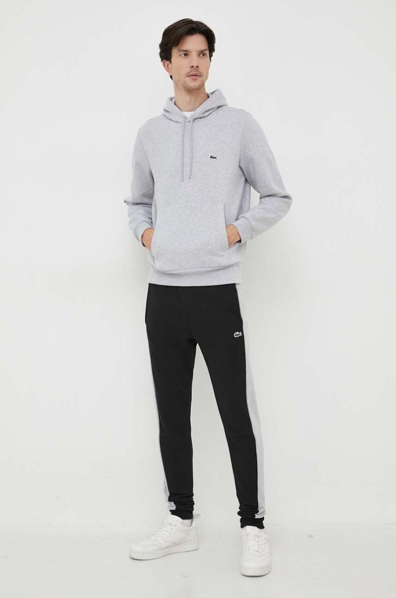 Кофта Lacoste чоловіча колір сірий з капюшоном однотонна SH9623-031